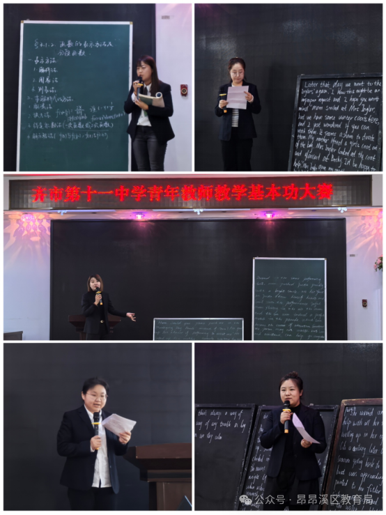 比賽前,教務(wù)處主任帶領(lǐng)幾位成員精心設(shè)計(jì)比賽流程,細(xì)心組織專業(yè)評委,用心準(zhǔn)備比賽用品。參賽青年教師準(zhǔn)備充分。從現(xiàn)場抽取題簽到備課再到現(xiàn)場展示,只有短短20分鐘時間,但是數(shù)學(xué)組劉鴻建老師、英語組姜來老師、英語組王玲老師、數(shù)學(xué)組馬文婷老師、英語組郭亞雙老師都展現(xiàn)出了極強(qiáng)的教學(xué)功底,語言表達(dá)精準(zhǔn),學(xué)科特色鮮明,臨場表現(xiàn)自信,以昂揚(yáng)的精神、飽滿的激情逐一驚艷亮相,將個人風(fēng)采與綜合素養(yǎng)表現(xiàn)得淋漓盡致!比賽結(jié)束后,教學(xué)副校長做了總結(jié)發(fā)言“本次比賽是對學(xué)校青年教師基本功的一次全面考察,也是為青年教師搭建切磋技藝、展示風(fēng)采、實(shí)現(xiàn)自我發(fā)展的平臺,指引青年教師自覺學(xué)習(xí),快速成長。在接下來的賽程里,希望有更多青年教師能夠在講臺上閃耀光芒,為十一中教育的星空增添更多的璀璨與光彩!本次青年教師基本功大賽,進(jìn)一步加強(qiáng)了青年教師業(yè)務(wù)基本技能的鍛煉,提高了青年教師業(yè)務(wù)水平,同時也營造了一個相互學(xué)習(xí)、相互交流、相互促進(jìn)的良好氛圍,基本功訓(xùn)練是一場永遠(yuǎn)不會落幕的戲,在這樣的舞臺上,一群青年教師正逐夢遠(yuǎn)方,綻放最美的芳華!