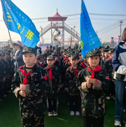 開營儀式上,一列列整齊的隊伍,一張張充滿朝氣的臉龐,徐莊實(shí)小的學(xué)子們身著統(tǒng)一軍裝,精神抖擻,目光堅定。激昂的國歌驟然奏響,國旗護(hù)衛(wèi)隊英姿颯爽,昂首闊步前行,在雄壯有力的國歌聲中,五星紅旗緩緩升起,全體肅立,升國旗,奏國歌,行注目禮。