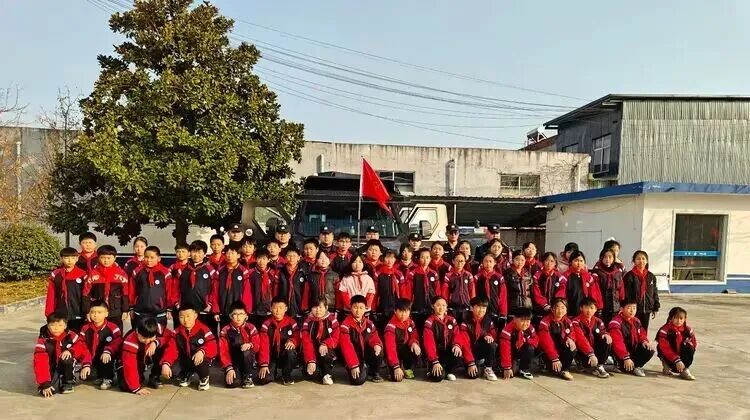 最后,在辦公樓旁,隊(duì)員們合影留念。隊(duì)伍整齊劃一,鮮艷的隊(duì)旗高高舉起,笑聲回蕩在晴朗的天空下。這不僅是一次參觀,更是一堂生動的公共安全教育課。