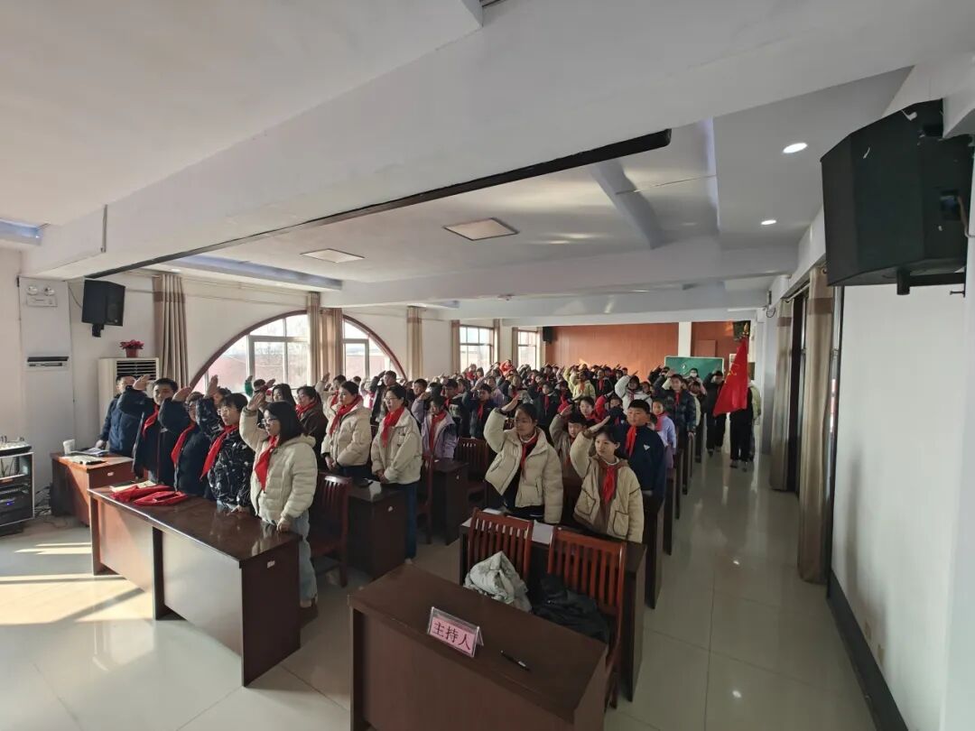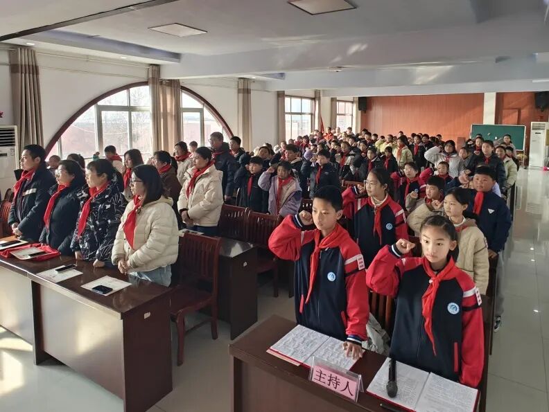 在大隊(duì)輔導(dǎo)員張興老師的帶領(lǐng)下,全體少先隊(duì)員高舉右拳,齊聲呼號(hào)——“時(shí)刻準(zhǔn)備著!”嘹亮而堅(jiān)定的童聲響徹會(huì)場(chǎng),鮮艷的紅領(lǐng)巾映照著每一張朝氣蓬勃的臉龐,緊握的拳頭彰顯出他們?yōu)槔硐肱c信念不懈奮斗的堅(jiān)定決心。