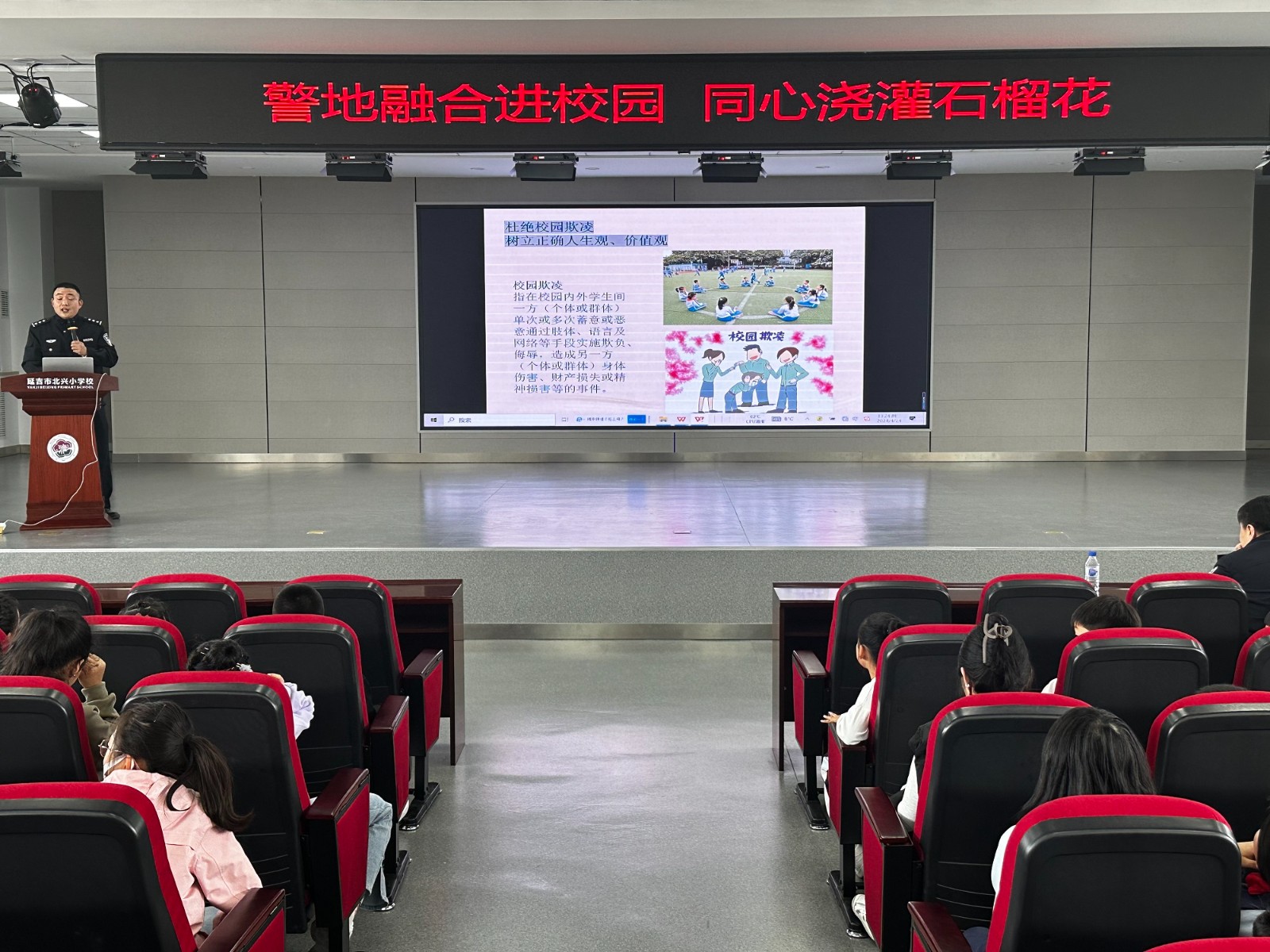 為增強(qiáng)青少年法治意識(shí),呵護(hù)青少年健康成長(zhǎng),4月24日,延吉市北山街道丹吉社區(qū)關(guān)工委聯(lián)合北山街道派出所走進(jìn)北興小學(xué),開展了“警地融合進(jìn)校園 同心澆灌石榴花”法治教育主題活動(dòng)。