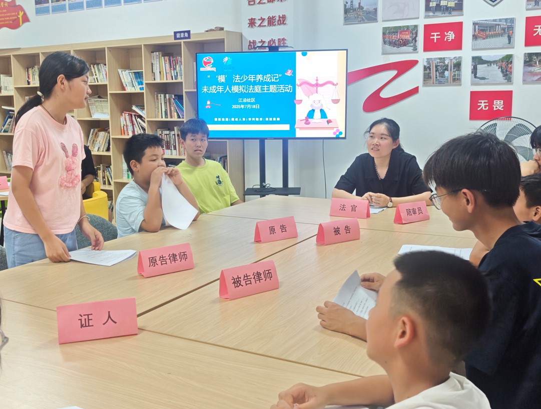 為增強青少年的法制觀念,提升他們對法律的認(rèn)知與敬畏,7月18日,太倉市瀏河鎮(zhèn)江沿社區(qū)關(guān)工委精心組織了一場別開生面的“?!狈ㄉ倌牮B(yǎng)成記——未成年人模擬法庭開庭活動。模擬法庭活動為青少年帶來了一次難忘的法治學(xué)習(xí)體驗。