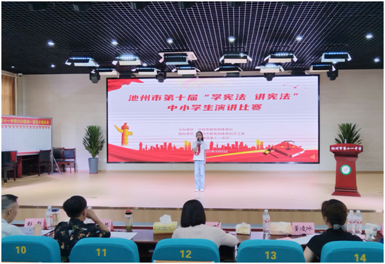 為深入開展憲法宣傳教育,引導廣大青少年尊崇憲法、學習憲法、遵守憲法、維護憲法,近日,安徽省池州市第十屆中小學生“學憲法 講憲法”法治素養(yǎng)競賽及演講比賽在市第十一中學舉行。