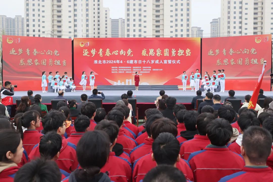 4月3日上午,團(tuán)淮北市委聯(lián)合淮北市教育局、淮北市文明辦、淮北市關(guān)工委在濉溪縣第二中學(xué)舉行“逐夢(mèng)青春心向黨 感恩家國(guó)勇?lián)?dāng)”淮北市2024年4·6建市日十八歲成人宣誓儀式。市委常委、市紀(jì)委書(shū)記、市監(jiān)委主任李朝暉,市委常委、濉溪縣委書(shū)記黃韡,市人大常委會(huì)副主任張香娥,市政協(xié)副主席孫興學(xué)、市關(guān)工委副主任徐福信等參加儀式,與現(xiàn)場(chǎng)1500余名高三學(xué)子和家長(zhǎng)一起見(jiàn)證這一神圣的時(shí)刻。