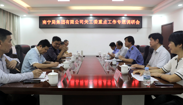 2024年4月25日下午,中國鐵路南寧局集團公司關(guān)工委常務(wù)副主任張柳勝、副主任周慶鋒、秘書長韋德廉、委員孟宇光、辦公室羅尚華等一行5人到柳州機務(wù)段開展關(guān)工委重點工作調(diào)研。柳州機務(wù)段黨委副書記、關(guān)工委主任周維保,關(guān)工委常務(wù)副主任劉耀林、團委書記、段關(guān)工委相關(guān)成員部門及“五老”代表李鏡輝、磨月琴等參加調(diào)研活動。
