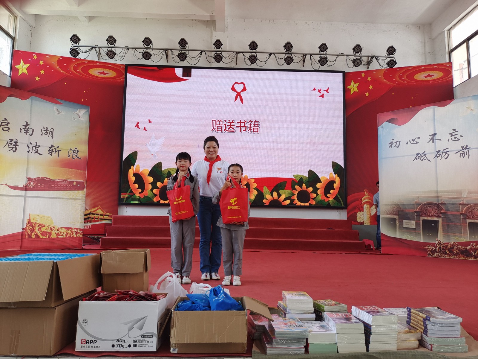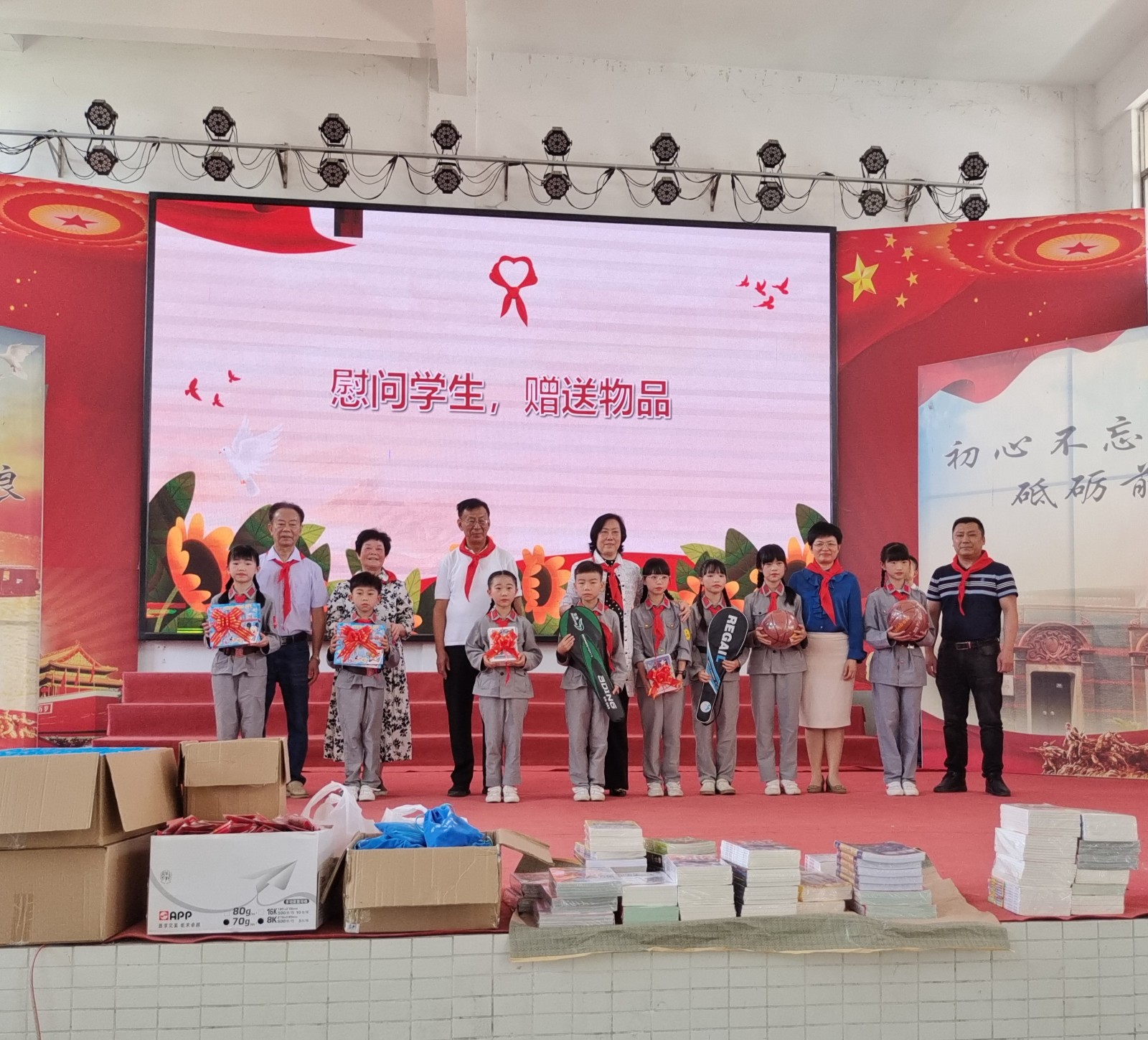 5月29日,廣東省揭陽(yáng)市關(guān)工委赴揭陽(yáng)潭王藍(lán)康紅軍小學(xué)開(kāi)展“六一”慰問(wèn)暨紅色故事會(huì)活動(dòng),贈(zèng)送一批價(jià)值5000元的文體用品。揭陽(yáng)市慧護(hù)社會(huì)工作服務(wù)中心也會(huì)同慰問(wèn),并送上價(jià)值3000元的學(xué)習(xí)書(shū)籍。