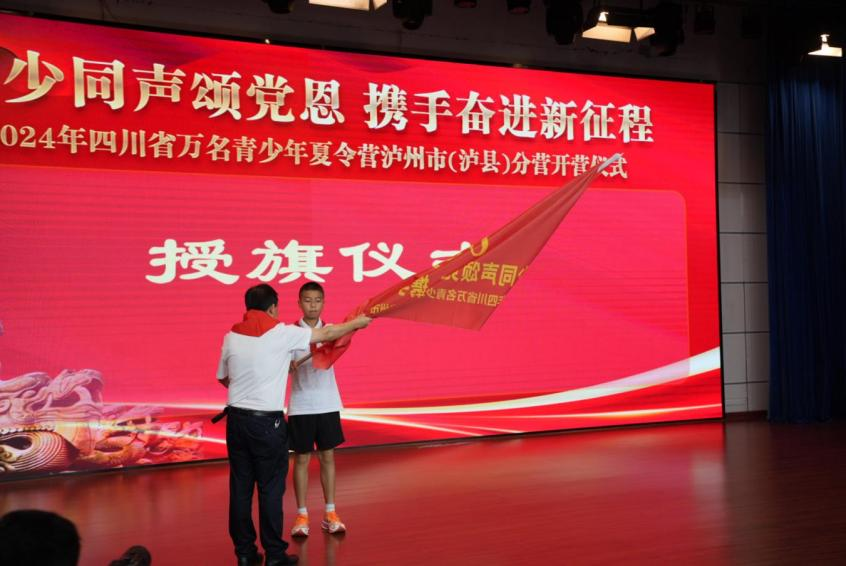 7月7日,“老少同聲頌黨恩 攜手奮進(jìn)新征程”2024年四川省萬(wàn)名青少年夏令營(yíng)瀘州市(瀘縣)分營(yíng)開營(yíng)儀式在瀘縣二中實(shí)驗(yàn)學(xué)校舉行。瀘州市關(guān)工委常務(wù)副主任肖榮華出席活動(dòng)并宣布開營(yíng),市關(guān)心下一代基金會(huì)理事長(zhǎng)張茂輝向營(yíng)員代表授營(yíng)旗。