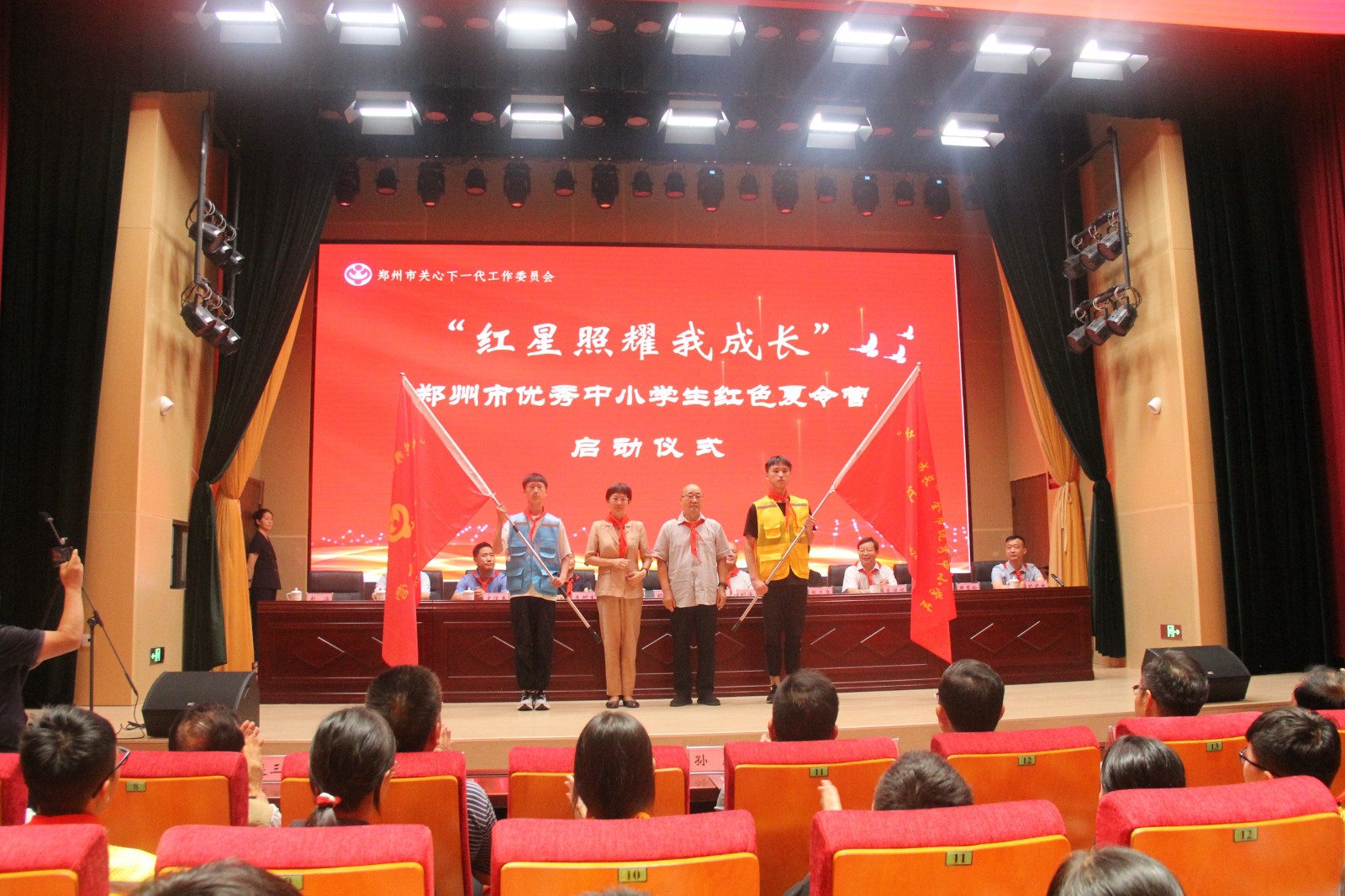儀式最后由市關(guān)工委主任胡荃和鄭州市委組織部副部長(zhǎng)、市委老干部局長(zhǎng)、市關(guān)工委副主任趙涵向?qū)W生代表授班旗。