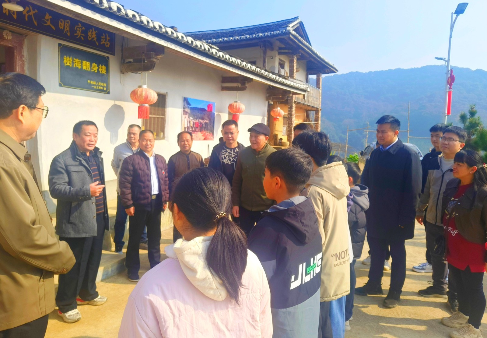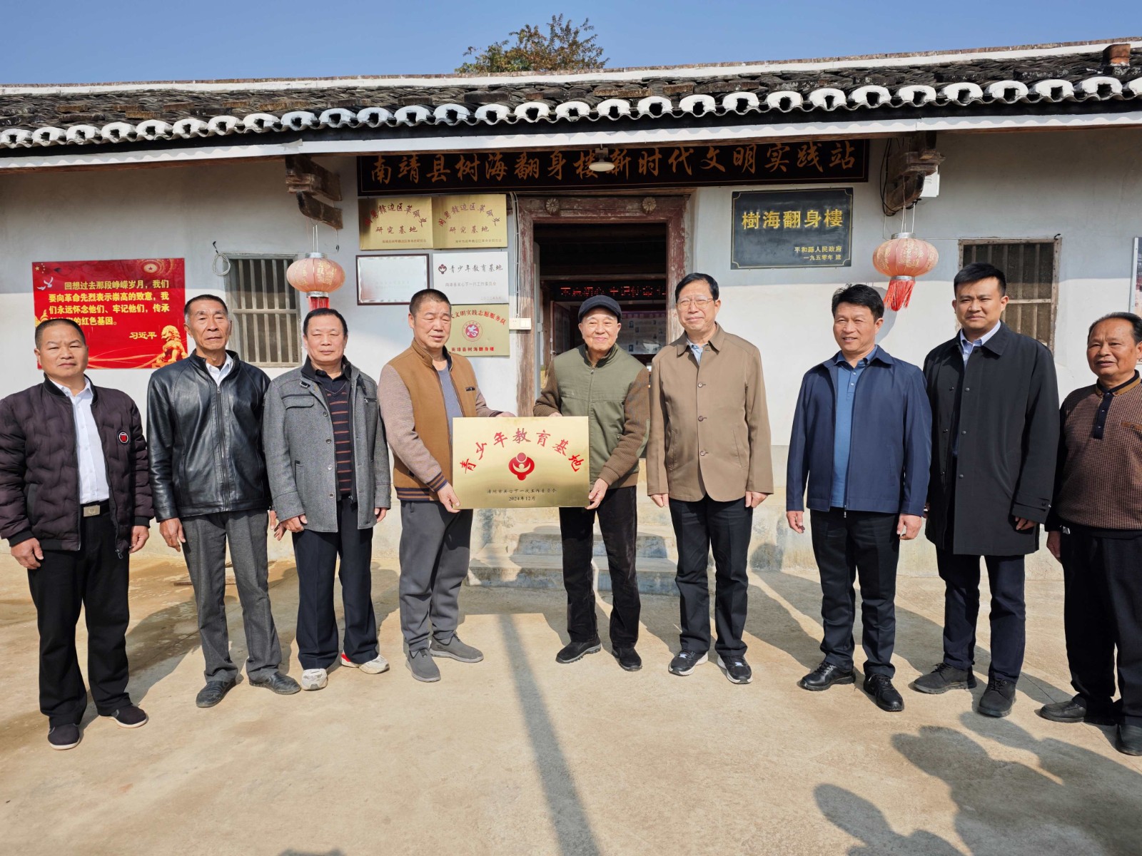 隨后,老領(lǐng)導(dǎo)實(shí)地調(diào)研了北坑村樹(shù)海翻身樓,并授予“青少年教育基地”;同時(shí)對(duì)基地的建設(shè)、管理和利用提出了具體要求,要把樹(shù)海翻身樓“青少年教育基地”建設(shè)成為廣大青少年“緬懷革命先烈、賡續(xù)紅色血脈”的重要陣地,辦成踐行社會(huì)主義核心價(jià)值觀的生動(dòng)課堂。