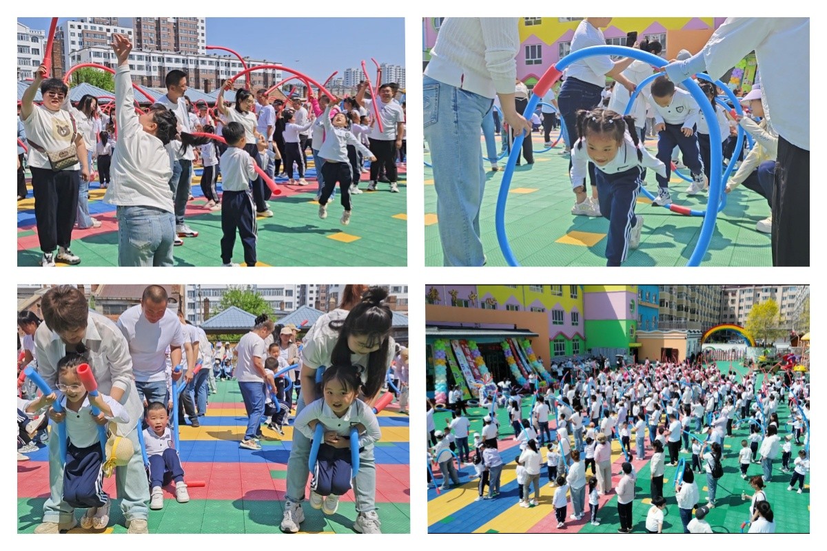 在親子游戲歡樂時(shí)光環(huán)節(jié),百變體能棒、充氣棒和快樂彩虹傘等游戲?qū)⒒顒?dòng)推向了高潮。家長(zhǎng)和孩子們一起合作,完成了一個(gè)又一個(gè)充滿挑戰(zhàn)的游戲,不僅增進(jìn)了親子之間的感情,還鍛煉了孩子們的身體協(xié)調(diào)能力和團(tuán)隊(duì)合作精神。