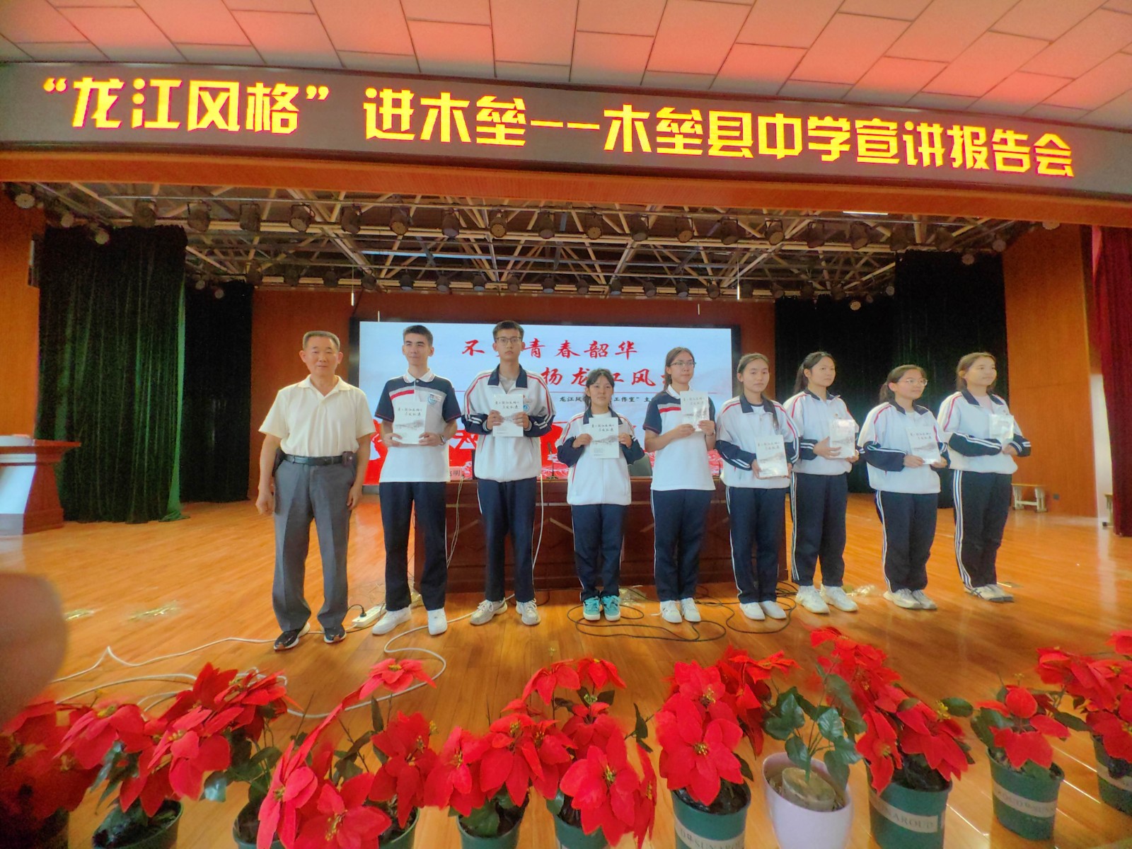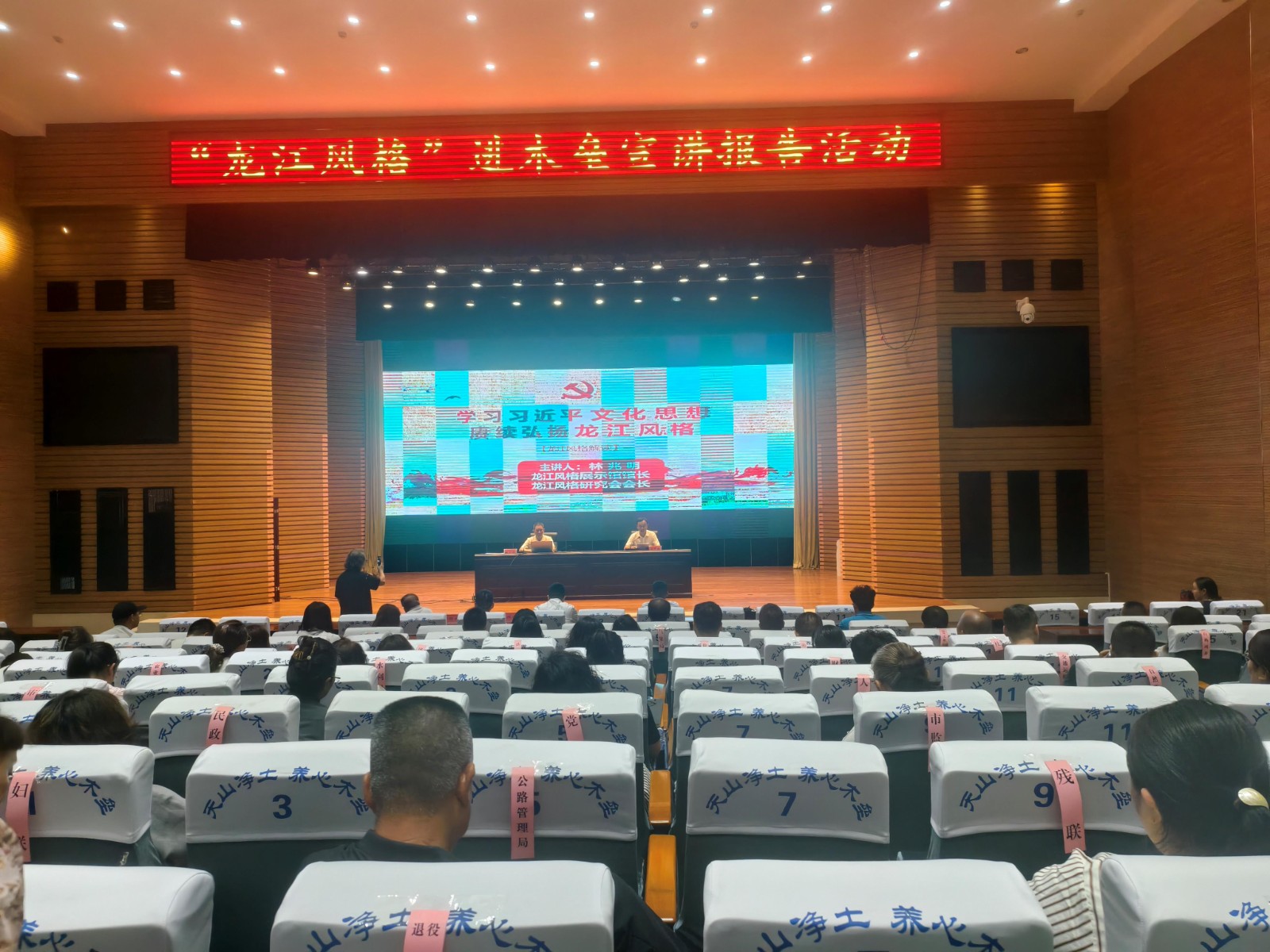 宣講小分隊(duì)先后走進(jìn)月亮地村、新城社區(qū)、木壘縣會(huì)議中心、縣中學(xué)及大黃水泉邊境派出所,通過(guò)專題報(bào)告、視頻展播、史料展示、互動(dòng)交流等方式,生動(dòng)詮釋“龍江風(fēng)格”的時(shí)代價(jià)值。龍江風(fēng)格展示館館長(zhǎng)、龍江風(fēng)格研究會(huì)會(huì)長(zhǎng)、“龍江風(fēng)格“五老”工作室主講師”林兆明以“學(xué)習(xí)習(xí)近平文化思想,賡續(xù)弘揚(yáng)龍江風(fēng)格”“龍江風(fēng)格里的廉潔文化”“不負(fù)青春韶華,弘揚(yáng)龍江風(fēng)格”為主題做了五場(chǎng)宣講報(bào)告。在木壘縣中學(xué),千余名師生在聆聽(tīng)了主題報(bào)告后,就青少年如何踐行精神內(nèi)涵展開(kāi)熱烈討論。