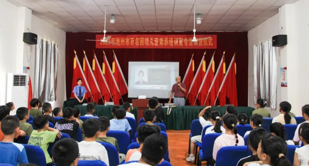 7月25日上午,安徽省池州市關(guān)工委邀請“五老”報告團(tuán)成員、市檢察院關(guān)工委常務(wù)副主任陳芝永為參加暑期困境兒童素養(yǎng)培訓(xùn)夏令營的孩子們授課。同時,市檢察院“沐童·惜華”工作室未檢檢察官走進(jìn)課堂,聚焦“防范校園欺凌”和“預(yù)防性侵害”兩大主題,開展專業(yè)而活潑的法治啟蒙。