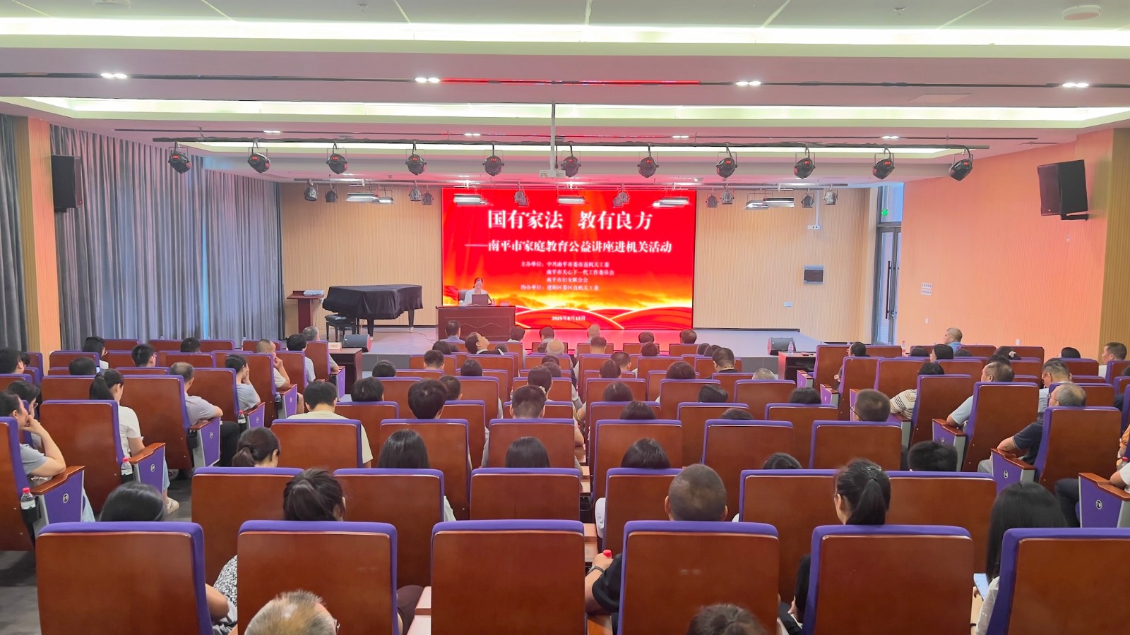 為深入貫徹落實(shí)習(xí)近平總書記關(guān)于注重家庭家教家風(fēng)建設(shè)的重要論述,提升機(jī)關(guān)干部的家庭教育能力,營造幸福和諧的家庭氛圍,8月13日上午,南平市關(guān)心下一代工作委員會、中共南平市委市直機(jī)關(guān)工委、南平市婦女聯(lián)合會聯(lián)合舉辦"國有家法 教有良方"家庭教育公益講座,市、區(qū)直機(jī)關(guān)160余名黨員干部參加聽講。