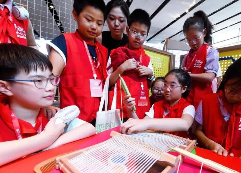 在中國(guó)美院象山校區(qū),小記者們參觀民族服飾與文化藝術(shù)展,學(xué)習(xí)傳統(tǒng)書法國(guó)畫知識(shí),體驗(yàn)土布制作、中國(guó)繩藝等傳統(tǒng)技藝,“沉浸式”領(lǐng)略中華傳統(tǒng)文化的“別樣美”,引領(lǐng)他們?cè)跓釔壑泻霌P(yáng)文化基因,在傳承歷史中勇?lián)鷱?fù)興使命。