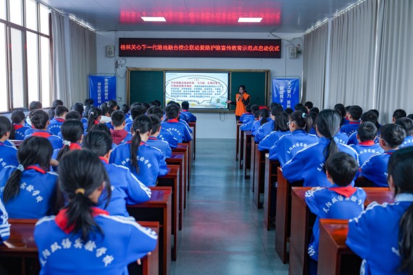 當(dāng)天,“路、地、校”三方領(lǐng)導(dǎo)共同為示范點(diǎn)揭牌,并參觀了鐵路安全文化宣傳陣地。該陣地系統(tǒng)展示了鐵路160年發(fā)展歷程與安全知識,并設(shè)有學(xué)生作品展示區(qū),營造了沉浸式學(xué)習(xí)場景。學(xué)生代表介紹了鐵路安全常識與身邊的愛路護(hù)路案例,生動分享了“愛路護(hù)路我們在行動”主題作品的創(chuàng)作理念。各方領(lǐng)導(dǎo)在發(fā)言中充分肯定了示范點(diǎn)建設(shè)的前期成果與重要意義,強(qiáng)調(diào)這是整合路地資源、護(hù)航青少年成長、筑牢鐵路安全防線的創(chuàng)新實(shí)踐,并對未來深化合作、長效運(yùn)行、輻射帶動提出了期望。當(dāng)天的啟動活動,還為 “愛路護(hù)路” 主題創(chuàng)意手抄報(bào)優(yōu)秀學(xué)生頒獎,并對獲獎?wù)哌M(jìn)行了表彰。桂林高鐵基礎(chǔ)設(shè)施段青年志愿者為師生們帶來了一場生動的愛路護(hù)路安全知識講座。
