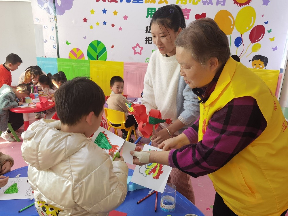 “哪位小朋友知道新年有哪些習(xí)俗呢?”“新年要貼春聯(lián)”“新年了還能看到舞龍舞獅表演”“新年還要貼精美的窗花”……活動現(xiàn)場,首先老師給孩子們分享新年的習(xí)俗小知識,幼兒園小朋友們興致滿滿。隨后開始制作“龍年”創(chuàng)意手工,孩子們積極參與,用一雙巧手做出了各色各樣的“龍年”主題手工作品,每一幅作品都是孩子們內(nèi)心最美好的表達。