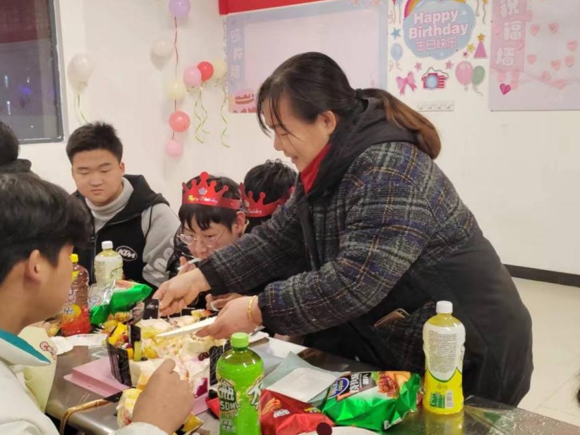 “祝你生日快樂,祝你生日快樂……”當(dāng)優(yōu)美動聽的旋律響起時,老師為同學(xué)們戴上生日帽、分發(fā)生日蛋糕,學(xué)生們品嘗著美味的蛋糕,香甜的味道直達(dá)心田,大家都沉浸在這份家的溫暖與快樂中。
