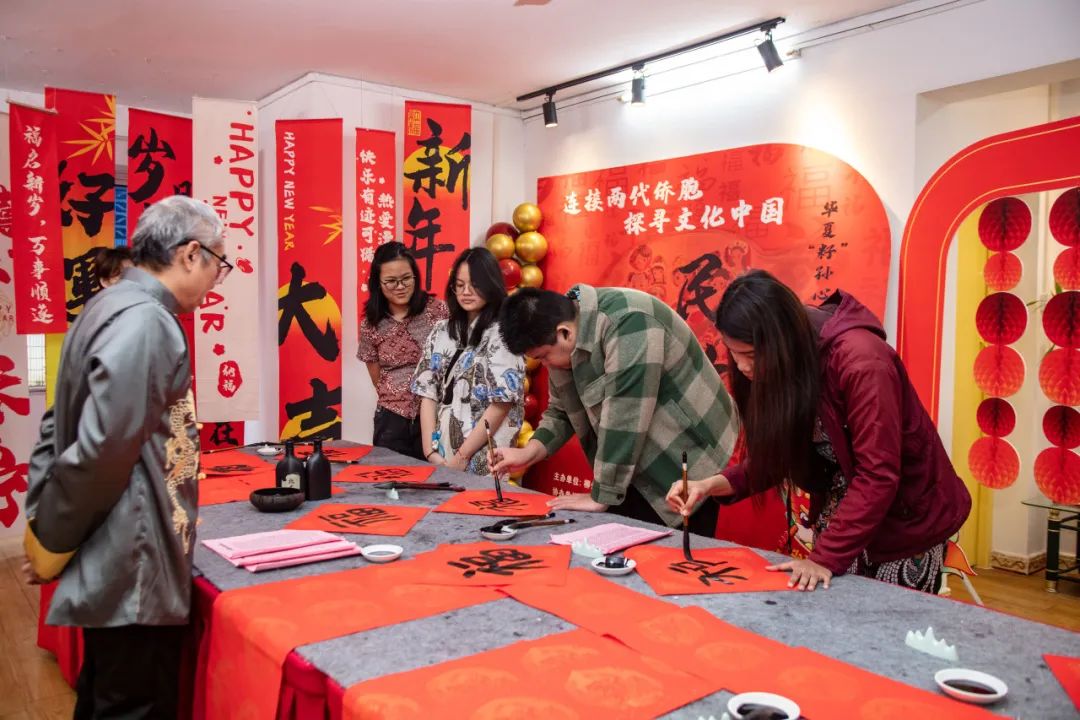 活動邀請到中國書法家協(xié)會會員、中華詩詞學會會員羅方龍老師為留學生及印尼老歸橋開展文化大講堂的授課,引導大家用心感受握在手中的毛筆,讓其表達自己的感想和體會。在老師們指導下,留學生們了解了書法、國畫歷史文化、歷史演變、認識了中國各大名家,也寫下人生第一幅書法作品。大家熱情高漲,自行書寫春聯(lián)、福字;紅紅火火,熱氣騰騰新出爐的春聯(lián)直接將年味氛圍感拉滿,讓印尼華裔留學生與老歸僑感受到中國節(jié)的火熱,加深對中華民族的歷史、文化和傳統(tǒng)的了解,大家也在互動中加深了彼此之間的聯(lián)系和友誼。