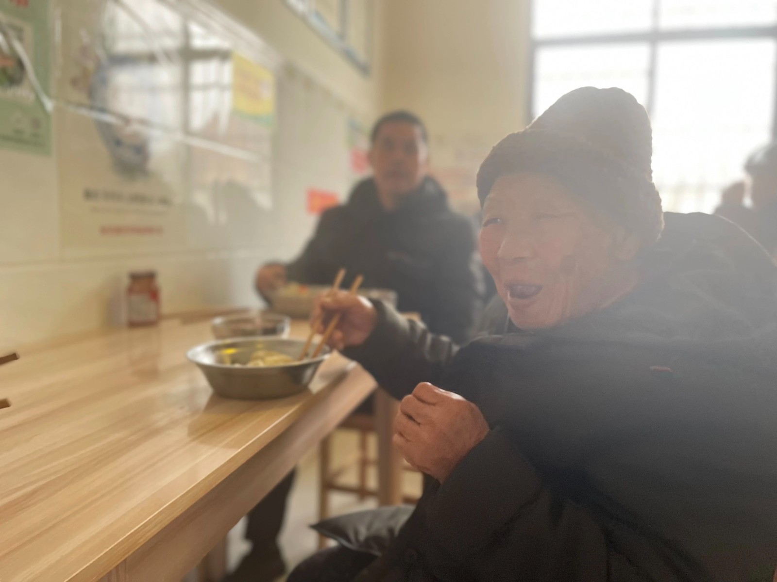 將包好的餃子下鍋,不一會,一盤盤熱氣騰騰的餃子出爐。與此同時,熬制兩個多小時的臘八粥的香味也漸漸彌漫開來,熱騰騰的臘八粥便制作完成,出鍋的臘八粥香味濃郁撲鼻,整個廚房充滿著香氣。老人們吃著餃子,喝著軟糯黏稠的臘八粥,甜在嘴里,暖在心里。