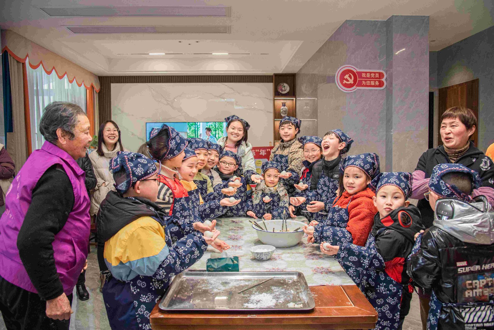 團(tuán)子是無錫的傳統(tǒng)美食,春節(jié)吃團(tuán)子,不僅代表著期盼家人團(tuán)圓之意,更是牽掛、是祝福、是鄉(xiāng)愁?!伴_始做團(tuán)子嘍!”隨著大家雀躍的歡呼聲,“五老”志愿者手把手向孩子們傳授做團(tuán)子訣竅,揉粉、捏窩、塞餡、搓圓、點紅,現(xiàn)場熱火朝天、其樂融融。