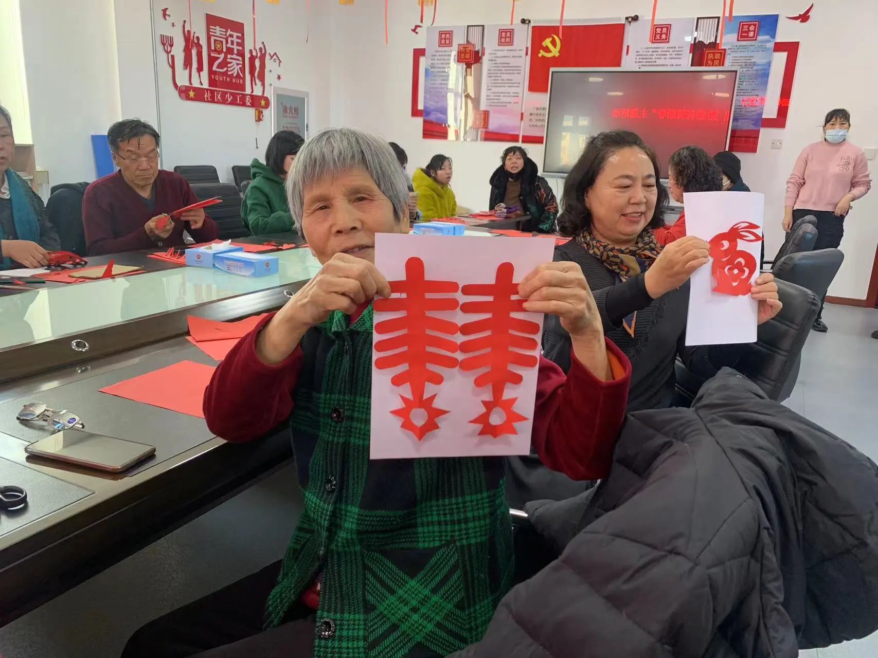 1月25日,開(kāi)展“弘揚(yáng)傳統(tǒng)文化 巧手剪窗花”活動(dòng),吸引了眾多“五老”前來(lái)參加?;顒?dòng)中,參與者從折紙、標(biāo)記線條、比例控制、運(yùn)刀技巧等方面進(jìn)行認(rèn)真的折紙、劃線,“五老”們發(fā)揮自己的想象力和創(chuàng)造力,運(yùn)用刻刀和剪刀,一張張形狀各異的窗花在她們的手中誕生了。
