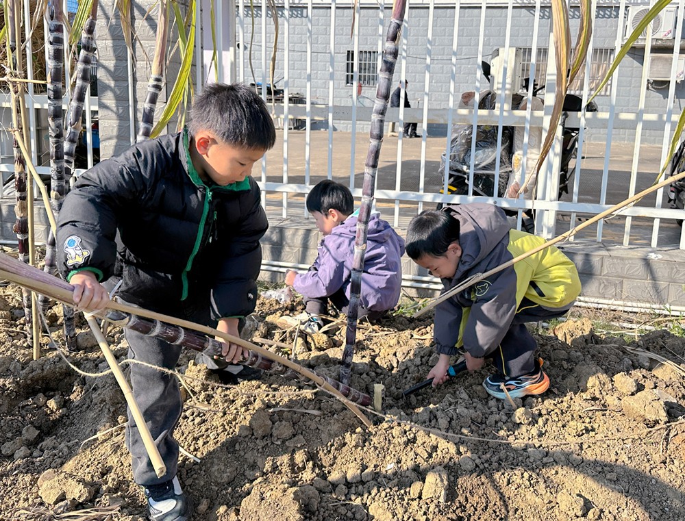 摘要: 1月7日,江蘇宜興市楊巷幼兒園的圍墻邊一片熱鬧,100多米長的勞動實踐基地里,甘蔗葉青翠挺拔、碩果累累。孩子們化身“小小農(nóng)夫”,在關工委老師指導下動手挖甘蔗、摘枝葉,還互相合作測量蔗稈長度,田間滿是歡聲笑語。