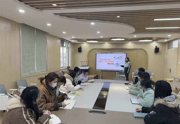 1月4日,江蘇省徐州市銅山區(qū)漢王鎮(zhèn)中心幼兒園關(guān)工委組織教師開展讀書分享活動。孫丹老師為大家分享《互動還是干擾》第五章。園關(guān)工委副主任曹雪婷主持活動。