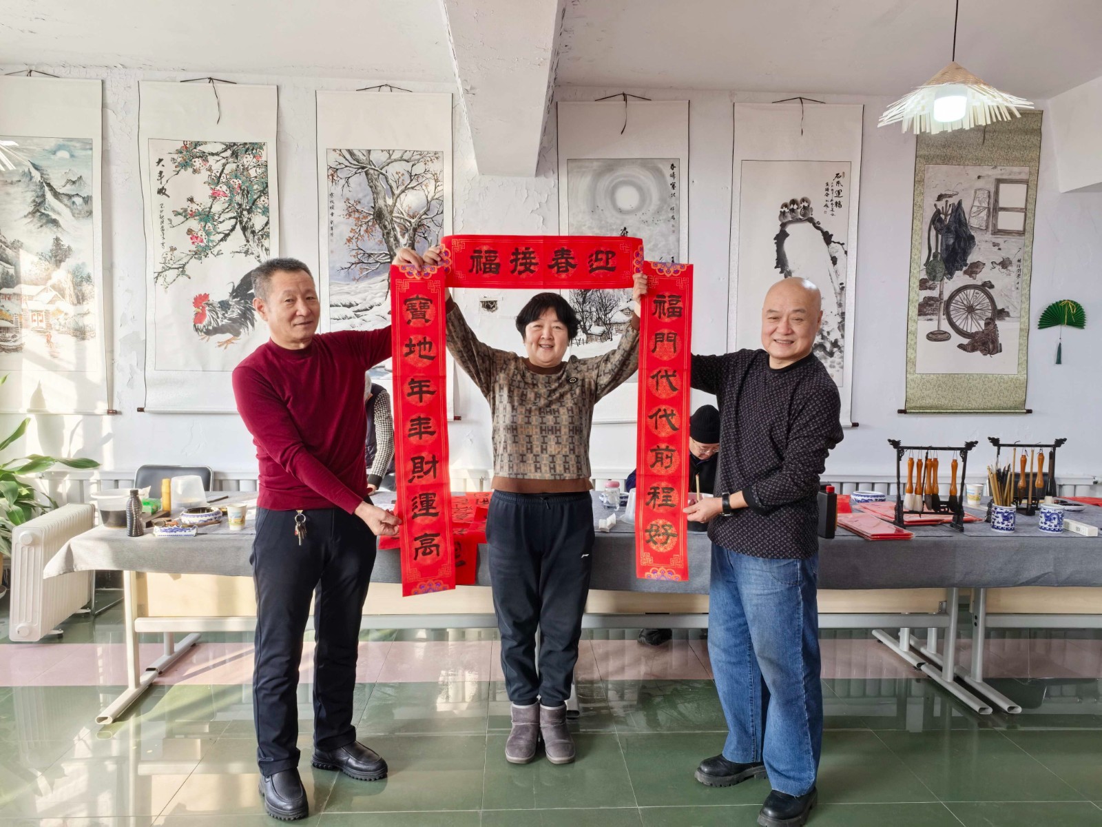 新春將至,年味漸濃。為進(jìn)一步豐富社區(qū)文化生活,助力嫩江市雙鎮(zhèn)南苑社區(qū)走訪慰問工作的開展,2026年1月7日,九三分公司關(guān)工委組織馮善林、姜長福、段慶和、常曉君等九三紅“五老”志愿者,走進(jìn)南苑社區(qū)書畫活動陣地,開展義務(wù)書寫春聯(lián)活動。揮毫潑墨間,一幅幅充滿新春祝福的春聯(lián)與“?!弊周S然紙上,為即將到來的春節(jié)增添了濃濃的喜慶氛圍。