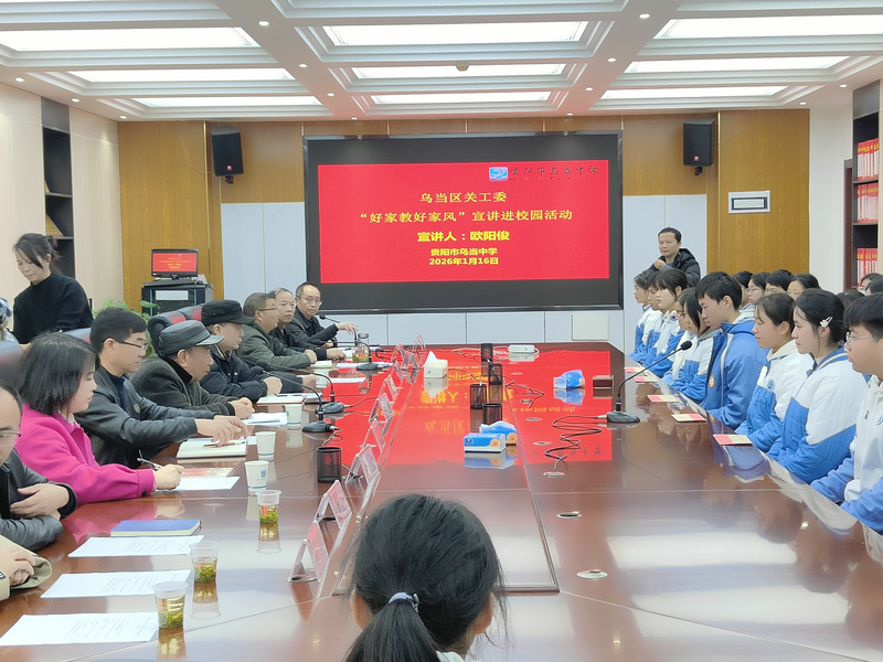 為弘揚(yáng)中華優(yōu)秀傳統(tǒng)文化,加強(qiáng)青少年思想道德建設(shè),1月16日,貴州省貴陽(yáng)市烏當(dāng)區(qū)關(guān)工委利用到烏當(dāng)中學(xué)開(kāi)展慰問(wèn)活動(dòng)之機(jī),開(kāi)展“好家教好家風(fēng)”主題宣講活動(dòng)。