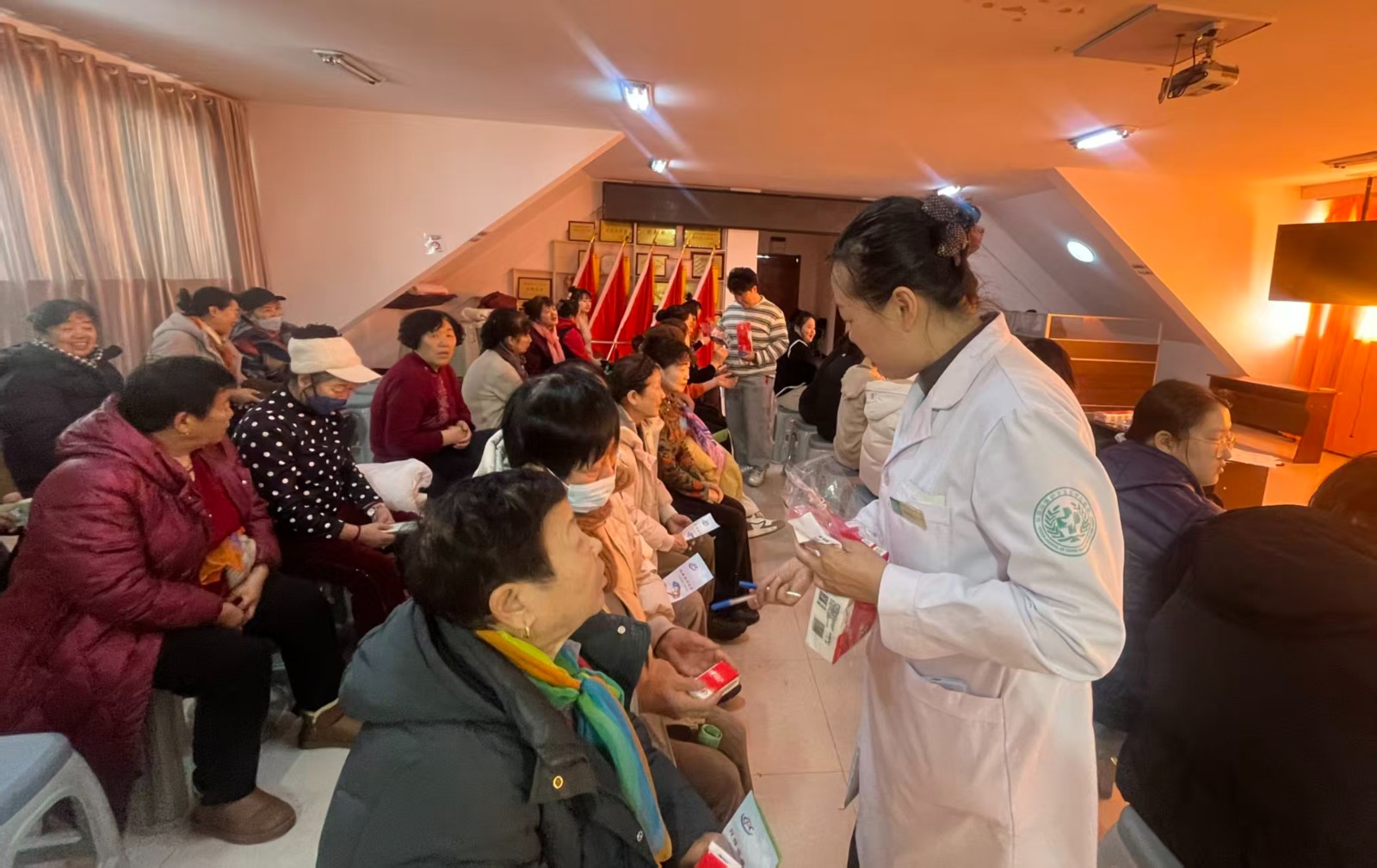 講座結(jié)束后,醫(yī)護人員為在場“五老”和居民發(fā)放健康知識宣傳單、科普手冊及小禮品,將實用的健康知識和體重管理技巧送到居民手中,讓大家把健康指導(dǎo) “帶回家”,在收獲知識的同時,切實感受到暖心關(guān)懷,將專業(yè)健康服務(wù)送到居民“家門口”,有效幫助居民樹立科學(xué)健康理念,為構(gòu)建健康和諧社區(qū)奠定了堅實基礎(chǔ)。