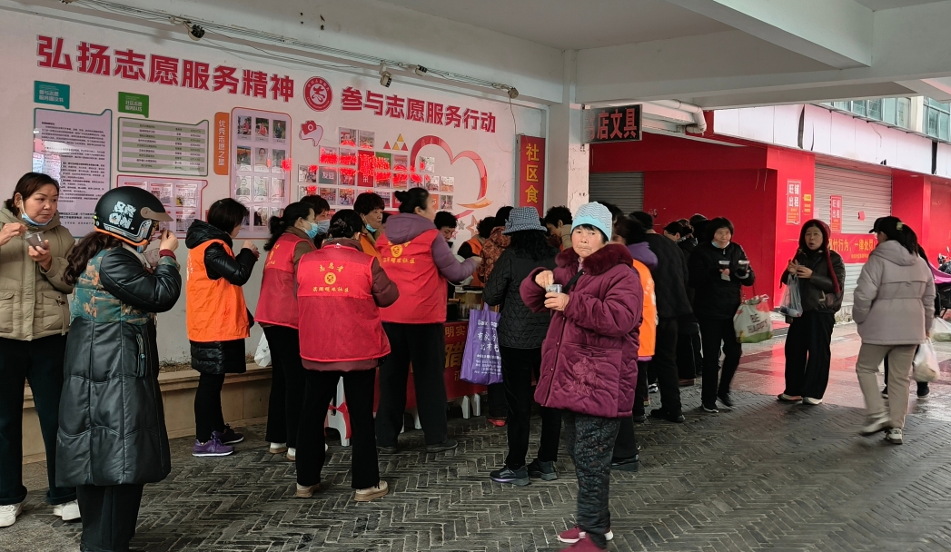 清晨,由社區(qū)黨員志愿者帶頭,大家早早集結,投入到臘八粥的熬制與分裝工作中。他們精心準備食材,細心把控火候,確保每一碗粥都用料十足、香甜可口?;顒娱_始后,兩個小區(qū)的志愿服務廣場成為了暖心的服務點。黨員志愿者們熱情地為前來領取的居民盛粥、分發(fā),并維持現(xiàn)場秩序。熱氣騰騰的粥香中,是他們忙碌而堅定的身影。