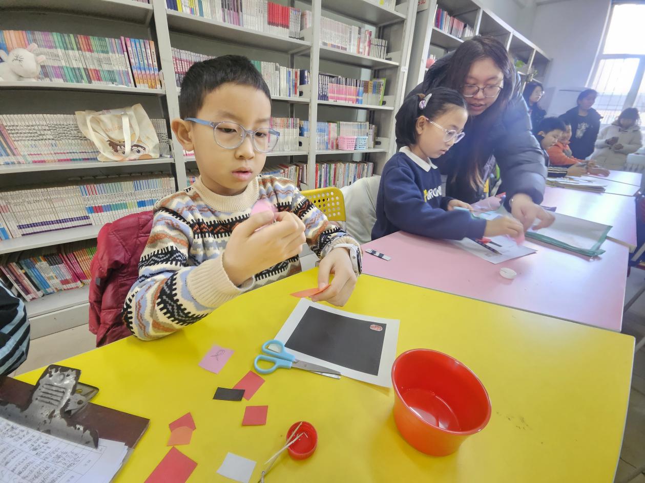 調(diào)研結(jié)束后,托管班精心組織了剪紙貼畫手工活動。剪紙貼畫非遺傳承人李萍老師提前準備了色彩斑斕的彩紙、膠水、剪刀等材料,向孩子們講解剪紙貼畫的創(chuàng)作技巧與安全注意事項。孩子們興致盎然,充分發(fā)揮想象力與創(chuàng)造力,裁剪、拼接、粘貼,將普通的彩紙變成了一幅幅充滿童趣的作品——靈動的小動物、絢麗的花朵躍然紙上?;顒蝇F(xiàn)場歡聲笑語不斷,孩子們在動手實踐中鍛煉了審美能力與動手協(xié)調(diào)能力,也感受到了傳統(tǒng)手工藝術(shù)的魅力。