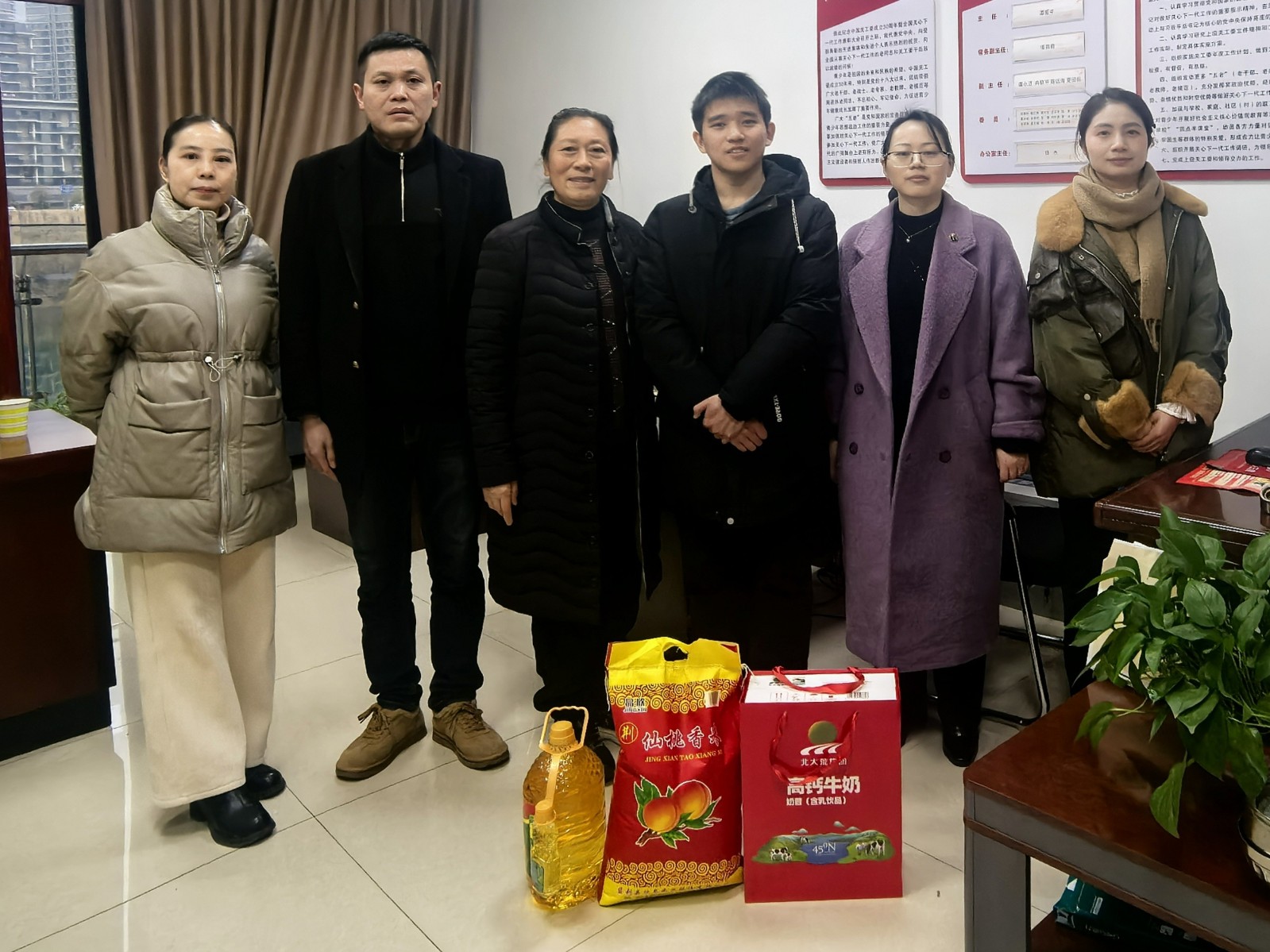 慰問組一行深入走訪,與孩子們面對面交談,悉心傾聽孩子們的心聲,細(xì)致了解他們的生活近況、學(xué)習(xí)困難與成長愿望,并鼓勵孩子們樹立自立自強(qiáng)的信念,以積極樂觀的心態(tài)面對生活。同時,為孩子們送上保暖衣物,為各個家庭送上大米豆油等愛心物資。在走訪一名正在就讀大二的事實無人撫養(yǎng)青年時,關(guān)工委的老同志更與他進(jìn)行了深入交流,傾聽了他對未來的規(guī)劃。這位青年動情地表示,在社會的關(guān)愛下得以安心求學(xué),他內(nèi)心充滿了感激,并透露了自己未來希望考取公務(wù)員或參軍入伍回報社會的想法。慰問組對他的志向給予了高度肯定和鼓勵,并表示關(guān)工委將持續(xù)關(guān)注他的成長,做他追夢路上的支持者。