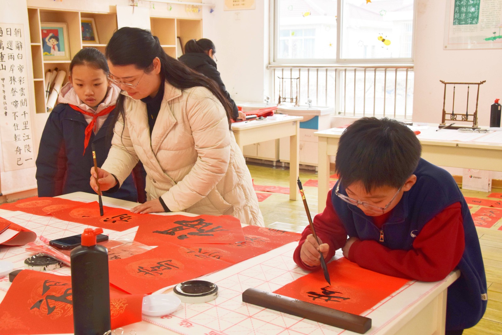 在退休老教師的悉心指導(dǎo)下,孩子們?nèi)褙炞?,認(rèn)真書寫。稚嫩的筆觸中飽含對(duì)新年的憧憬,紅紙上流淌著文化的溫度。一幅幅春聯(lián)、一個(gè)個(gè)“福”字,不僅承載著孩子們對(duì)新春的美好祝愿,也凝聚著老教師們的殷切期望。