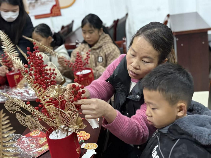 鄰里手作匯 花桶納春福——貴州省貴陽市烏當區(qū)東風(fēng)鎮(zhèn)云錦尚城易地扶貧搬遷社區(qū) 開展新春年宵花制作活動