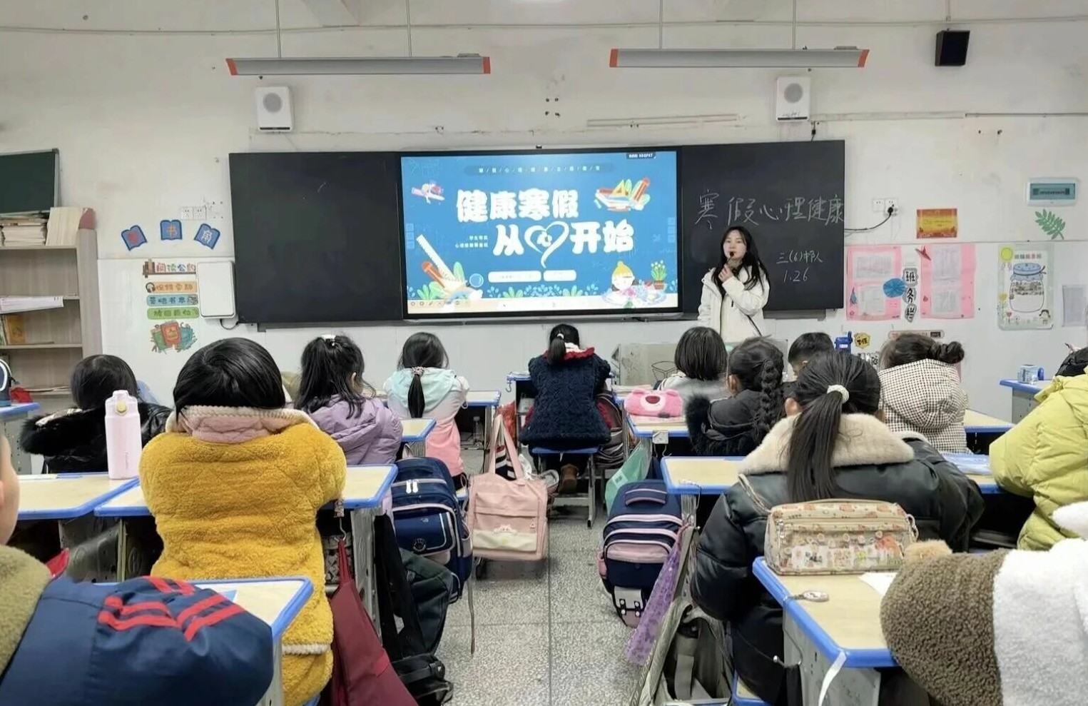 班隊(duì)會上,班主任老師圍繞“什么是寒假心理健康”“寒假常見心理問題”“心理調(diào)適指南”三個主題展開引導(dǎo)。針對假期中可能出現(xiàn)的作息混亂、網(wǎng)絡(luò)依賴、情緒波動、親子沖突等問題,老師結(jié)合具體案例進(jìn)行了分析,強(qiáng)調(diào)保持心理健康對假期生活和后續(xù)學(xué)習(xí)的重要意義。