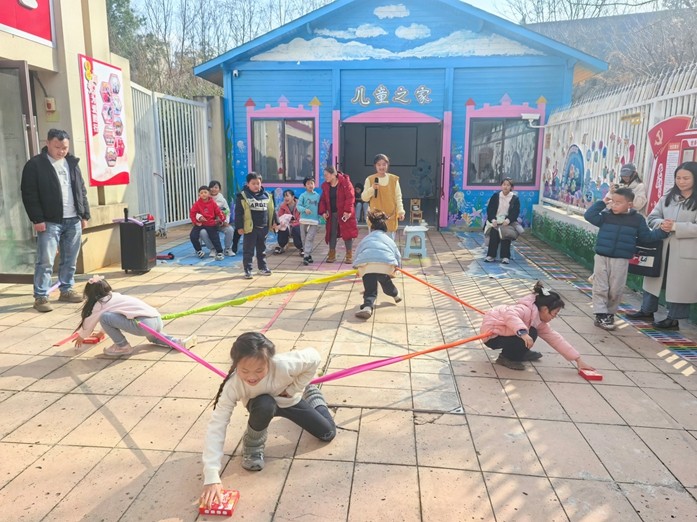 本次活動的流程與規(guī)則,孩子們迅速組隊、整裝待發(fā),臉上滿是期待,迫不及待地投入到趣味游戲當中?!懊裳酆>d棒對戰(zhàn)”環(huán)節(jié)率先拉開活動序幕。蒙眼的孩子原地轉(zhuǎn)完圈后,憑借聽覺捕捉方向、依靠反應(yīng)揮舞海綿棒,防守方則在劃定的安全區(qū)內(nèi)靈活躲閃、巧妙周旋?,F(xiàn)場笑聲、吶喊聲、加油聲此起彼伏,孩子們在趣味對抗中,不僅鍛煉了肢體協(xié)調(diào)能力與應(yīng)急反應(yīng)能力,更收獲了純粹的快樂?!皧A板接力賽”環(huán)節(jié)兼具溫情與規(guī)則感,孩子們分組參與、默契接力,雙腿夾住軟夾板同步前行,嚴格遵守“膝蓋交接、掉落重來”的規(guī)則,在一步步協(xié)作前行中,既錘煉了堅持到底的毅力,也深刻體會到默契配合的重要性。家長們在一旁全程駐足,不時加油鼓勁,溫暖的陪伴讓整個活動現(xiàn)場暖意融融、溫情滿溢。“東南西北跑”環(huán)節(jié)將活動氛圍推向高潮。孩子們小手拉緊彩虹拉力圈,凝神傾聽裁判指令,一聲令下便沖向指定方向搶奪屬于自己方向的玩具,最先拿到玩具的孩子即為獲勝者。大家全力以赴、奮勇爭先,在奔跑中感受運動的樂趣,充分展現(xiàn)了社區(qū)兒童的活力與爆發(fā)力。本次“社會實踐活動月”為期1個月,從2026年1月27-2月28日結(jié)束,以免費公益形式,能夠提供課業(yè)輔導、趣味活動、動手實踐等互動課程服務(wù),充分依托社區(qū)兒童之家活動陣地,把社區(qū)兒童凝聚在社區(qū)兒童之家周圍,用實際行動踐行和護航守護孩子健康成長,讓兒童之家成為孩子成長的“第二個家”。