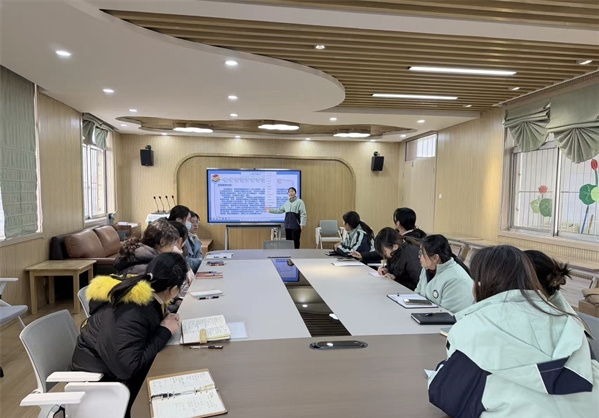 1月28日,江蘇省徐州市銅山區(qū)漢王鎮(zhèn)中心幼兒園關(guān)工委組織教師開展讀書分享活動,王春花老師以“你會和孩子聊天嗎?——兒童游戲中的傾聽和回應(yīng)”為主題,帶來第四章游戲案例閱讀分享,為全園教師的專業(yè)成長注入新思考。