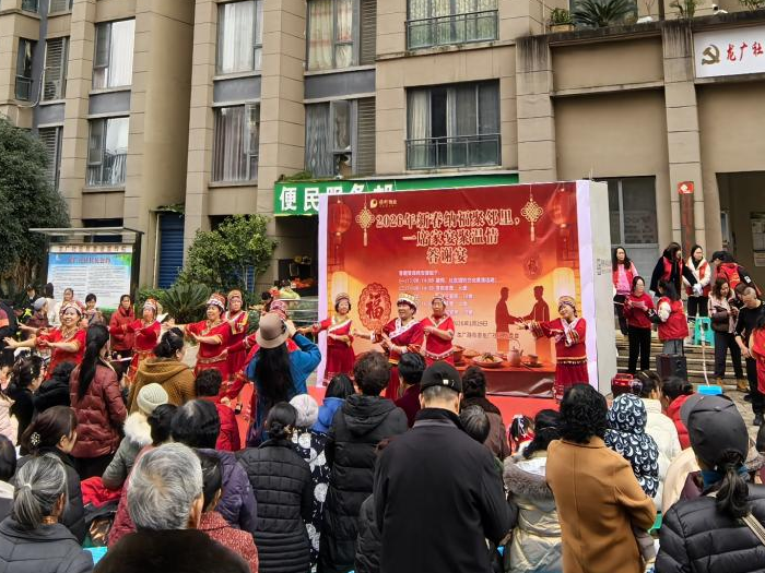 為弘揚中華優(yōu)秀傳統(tǒng)文化,豐富社區(qū)居民精神文化生活,增進(jìn)鄰里情誼,增強社區(qū)凝聚力,1月29日,貴州省貴陽市烏當(dāng)區(qū)龍廣路街道龍廣社區(qū)黨支部、關(guān)工委攜手保利紫薇郡物業(yè),舉辦“新春納福聚鄰里、一席家宴聚溫情”文藝匯演暨長桌宴活動?;顒尤诤衔乃囌寡?、寫春聯(lián)、健康義診與鄰里共餐等多種形式,吸引了眾多社區(qū)居民參與。