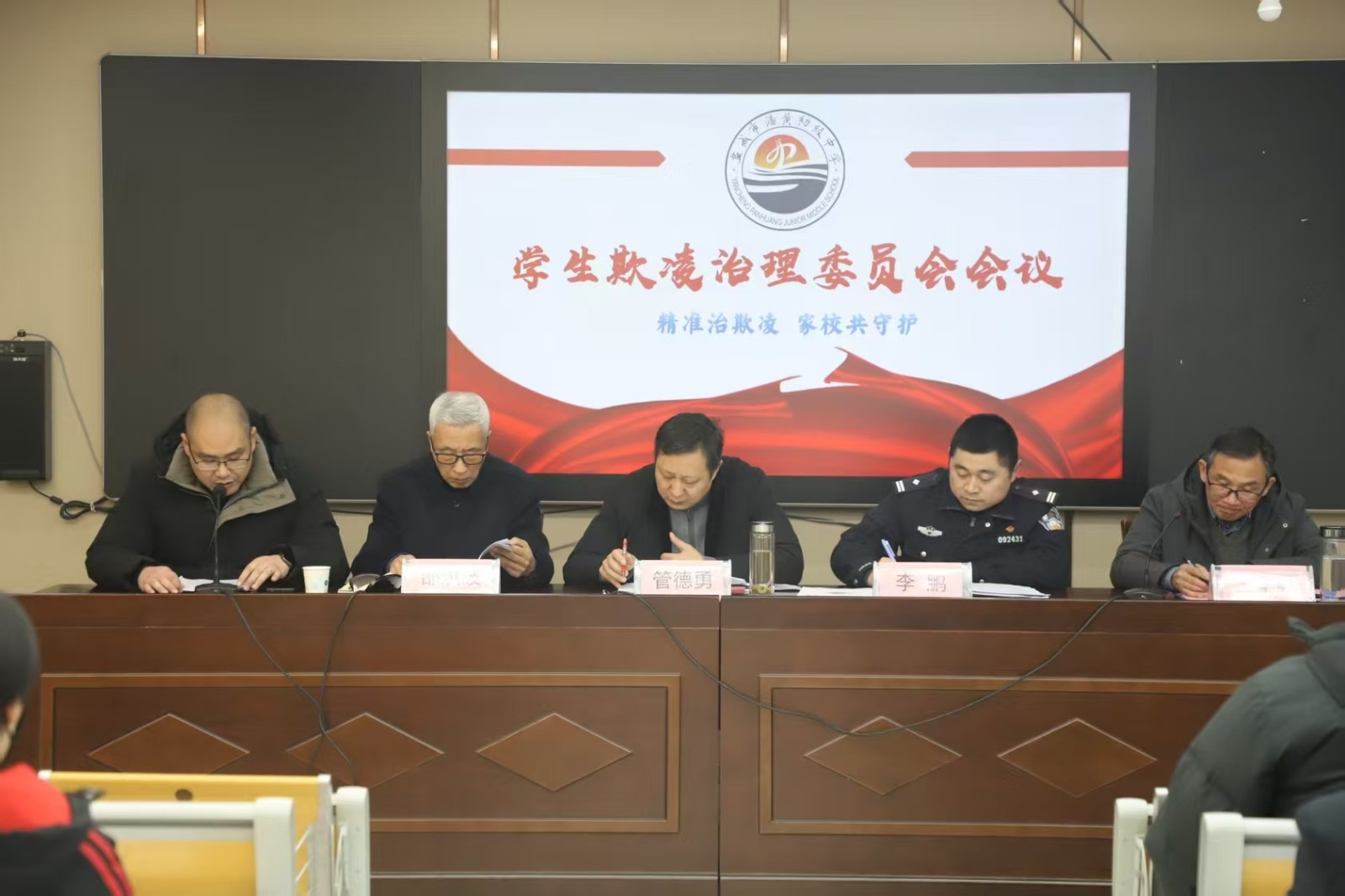 2月4日下午,潘黃初級(jí)中學(xué)學(xué)生欺凌治理委員會(huì)成立并舉行第一次會(huì)議。治理委員會(huì)主任委員、該校黨支部書記、校長(zhǎng)管德勇,副主任委員、該校分管副校長(zhǎng)王學(xué)勤,副主任委員、潘黃派出所副所長(zhǎng)、潘黃初中法治副校長(zhǎng)李鵬,委員、區(qū)“夕陽(yáng)紅關(guān)工委”法治宣傳隊(duì)隊(duì)長(zhǎng)邵洪波和潘黃初中德育、安全、團(tuán)委等部門負(fù)責(zé)人及年級(jí)主任、心理咨詢教師、教職工代表,潘黃初中所在社區(qū)代表,家長(zhǎng)委員會(huì)代表近30人出席。王學(xué)勤主持會(huì)議。
