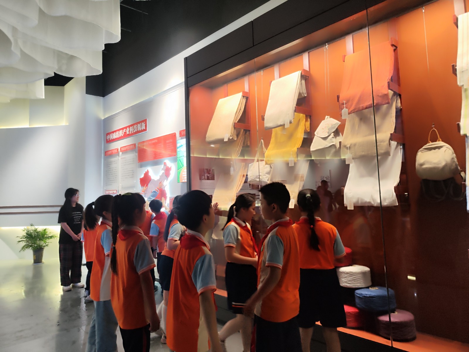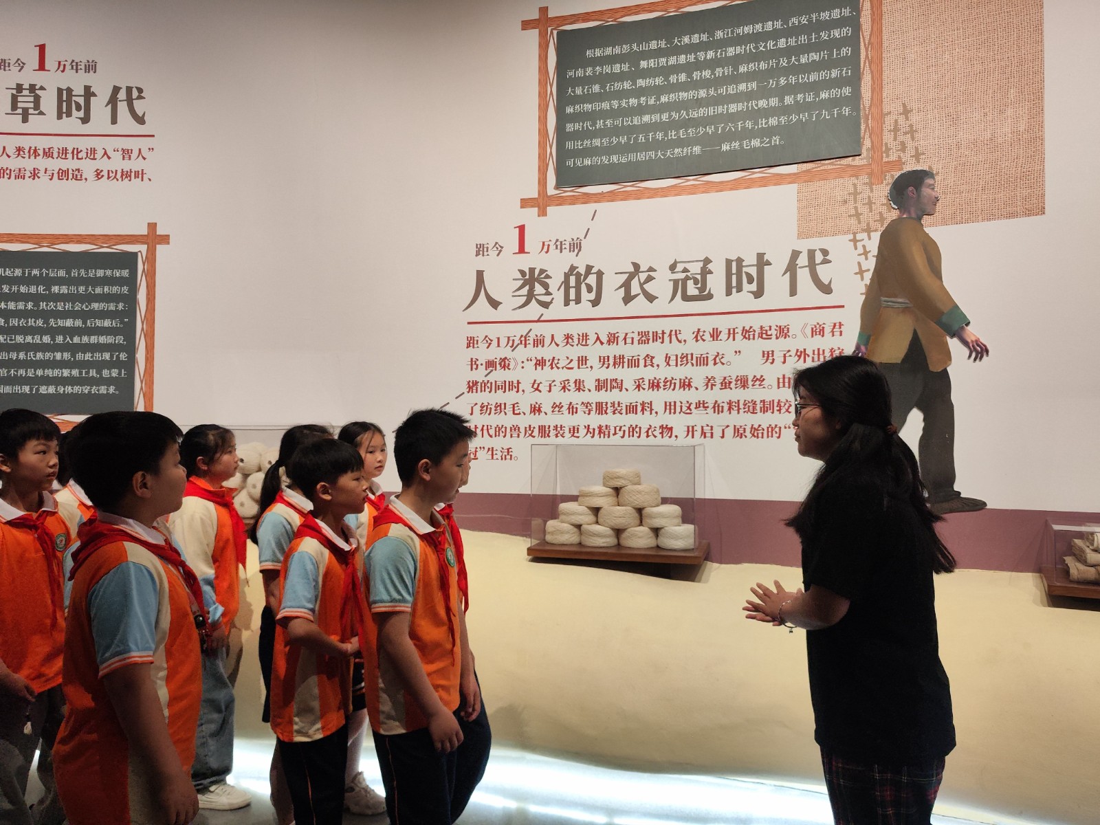 隊員們跟隨講解員認識了館內(nèi)的基本藏品,從古時的麻衣、方巾、家居用品、制麻工具,到現(xiàn)代的麻制服裝、麻類刺繡、書法、繪畫等藝術(shù)作品,縱橫時空,多元豐富,展現(xiàn)了中國麻文化內(nèi)涵和對傳統(tǒng)麻紡技藝的傳承。參觀結(jié)束后,小隊員們爭當起小小講解員,加入到宣傳家鄉(xiāng)文化的隊伍中,用稚嫩的聲音,表達對家鄉(xiāng)的熱愛。隊員們紛紛分享自己的所思所想,三(3)中隊的劉悰靈說:“我印象特別深刻的是用苧麻制作成的夏布畫,我平常畫畫都是用紙畫的,而夏布畫是繡娘用針線一針一線縫制而成的,所以我就覺得很好看,我感受到了古代勞動人民的智慧結(jié)晶。”三(4)中隊的朱立涵也分享道:“參觀完麻博物館,我才知道我的家鄉(xiāng)有如此豐富的麻文化,我為我的家鄉(xiāng)感到自豪!”