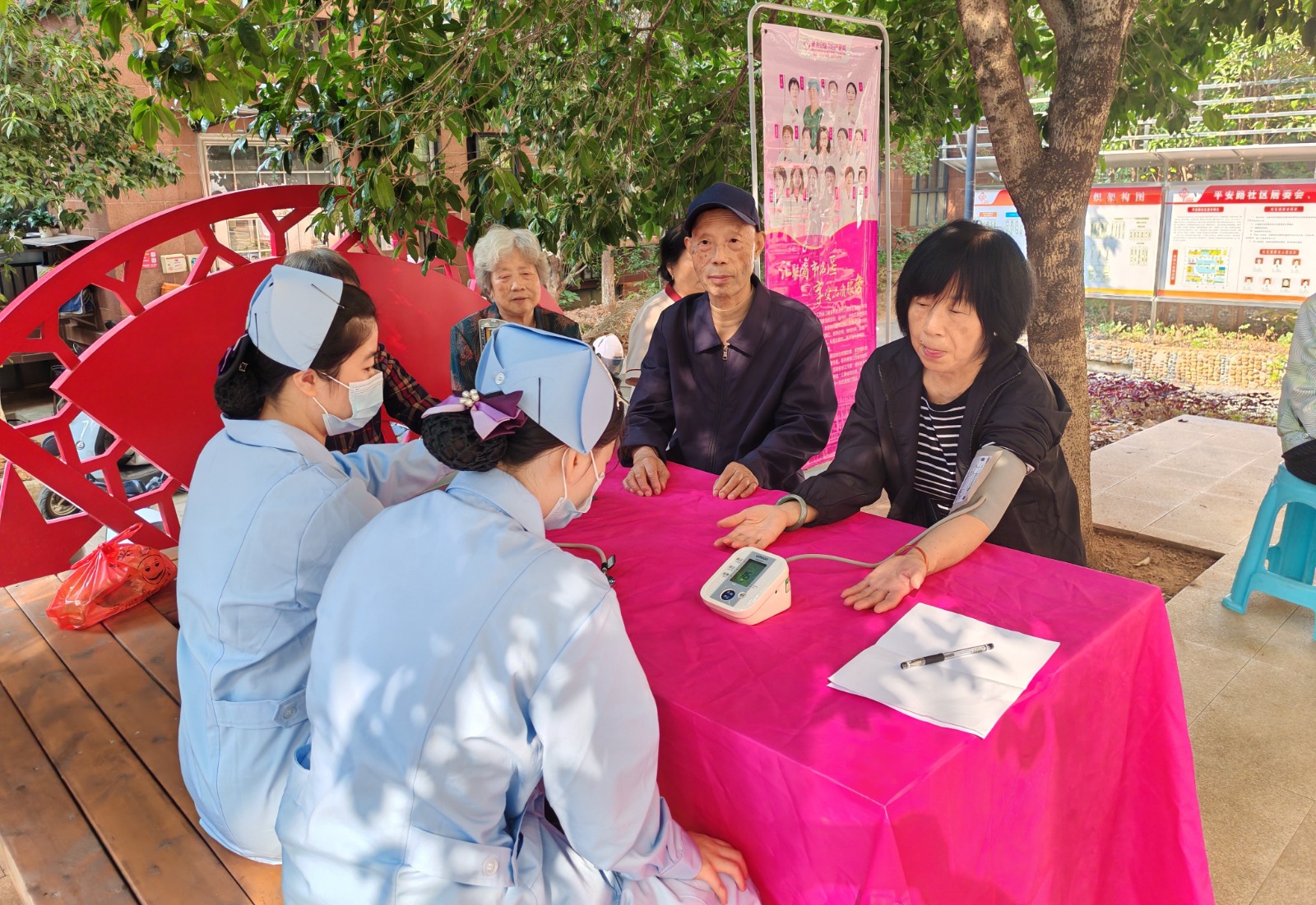 活動現(xiàn)場,社區(qū)工作人員為轄區(qū)老人送上節(jié)日祝福,與他們親切交談、噓寒問暖,詳細(xì)詢問最近健康狀況,生活需求以及遇到的困難。并給大家發(fā)放大米、食用油等慰問品,切實(shí)把溫暖送到了他們的手中,讓大家真正感受到社區(qū)大家庭的溫暖。隨后,醫(yī)護(hù)人員為老人們測量血壓,囑咐要注意飲食,保持良好的生活飲食習(xí)慣。最后,社區(qū)工作人員還上門走訪慰問百歲老人,聊家常、問冷暖,為他們送上慰問品,并致以節(jié)日的問候和祝福。