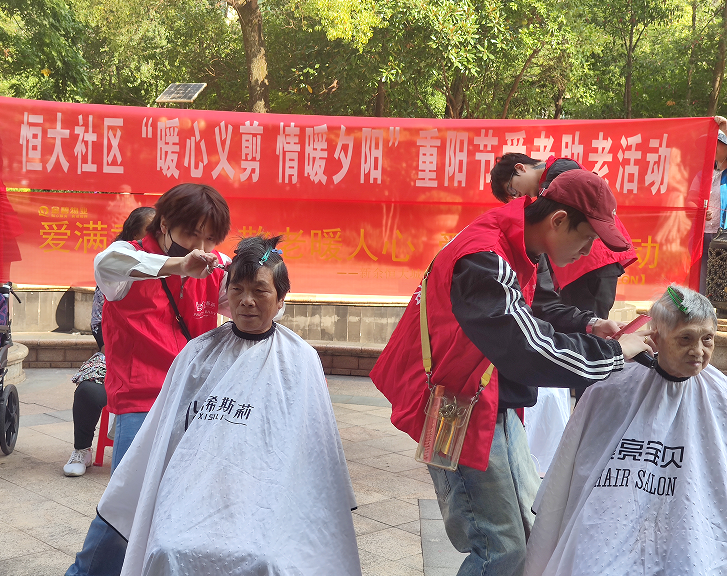 江西省新余市渝水區(qū)袁河街道恒大社區(qū)關(guān)工委開展“暖心義剪 情暖夕陽”重陽節(jié)活動