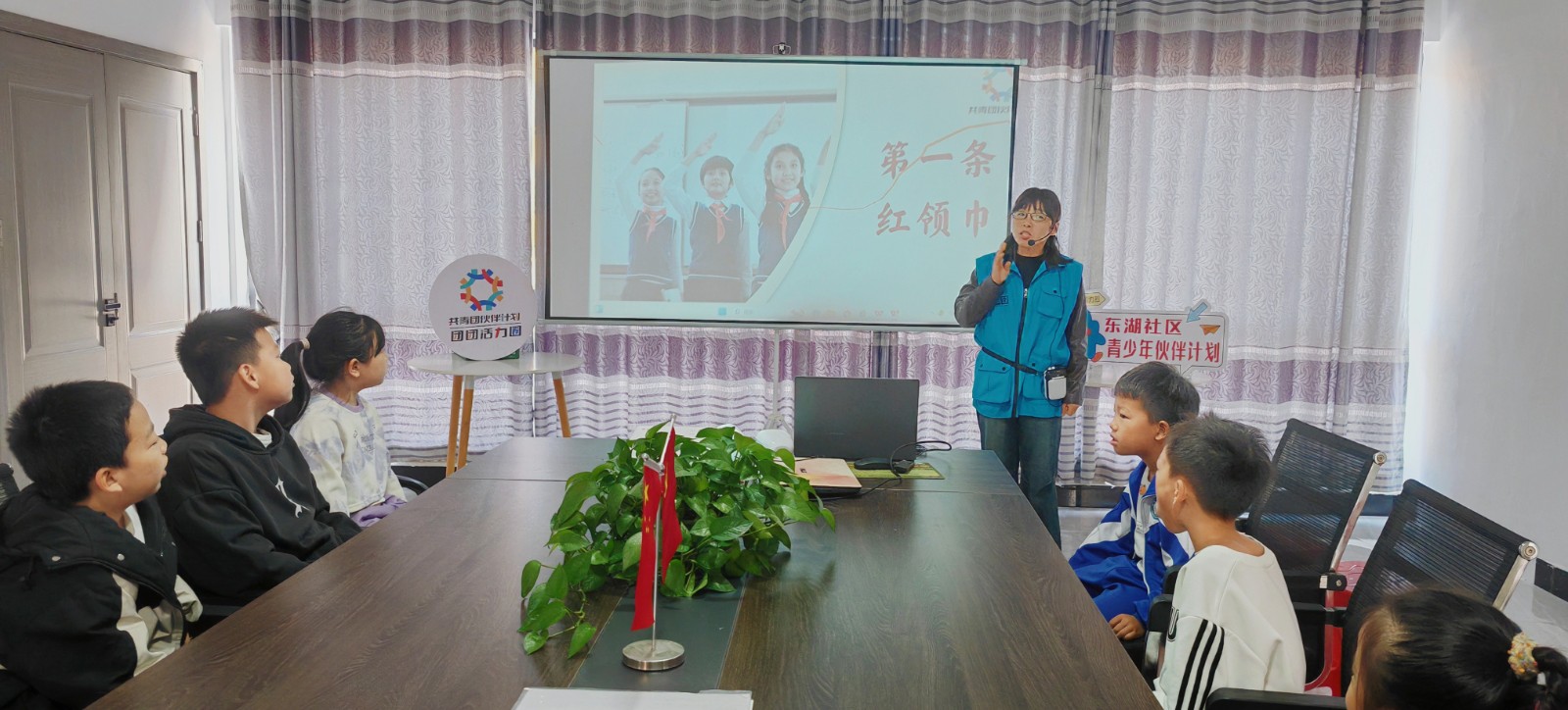 志愿者老師以《第一條紅領(lǐng)巾》為主題,為青少年講述了安源兒童團(tuán)的故事,了解了第一條紅領(lǐng)巾是如何在歷史的風(fēng)云中誕生,又是如何激勵(lì)無(wú)數(shù)少年為了理想而拼搏奮斗。隨后,志愿者老師還帶領(lǐng)青少年開(kāi)展“ 樂(lè)在球中,益加精彩”趣味籃球運(yùn)動(dòng)。