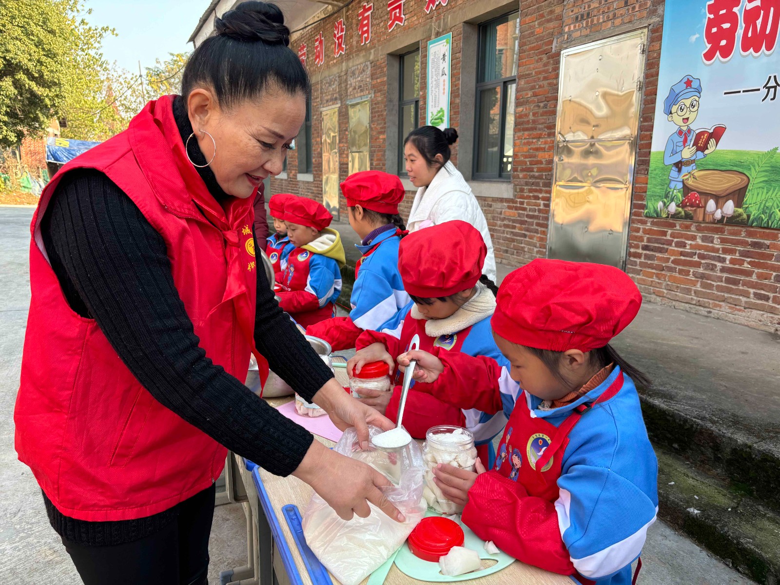 孩子們紛紛挽起袖子,親自動手操作,將一根根蘿卜精心處理,撒上鹽、糖、辣椒等調(diào)料,再仔細(xì)地裝入密封罐中。他們的臉上洋溢著專注與喜悅,仿佛在進(jìn)行一場神圣的美食創(chuàng)作儀式。在相互協(xié)作與交流的過程中,不僅增進(jìn)了彼此之間的感情,更讓大家深刻體會到傳統(tǒng)美食背后所蘊(yùn)含的深厚文化底蘊(yùn)。
