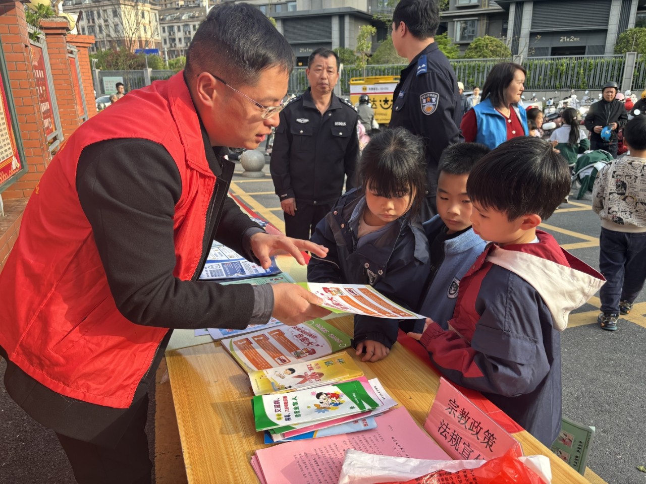為筑牢校園安全防線,4月3日下午,江西省新余市渝水區(qū)城北街道綠景社區(qū)關工委聯(lián)合市檢察院志愿者、民警在轄區(qū)北湖小學門口開展“護苗行動進行時,共織安全防護網(wǎng)”安全知識宣傳活動。