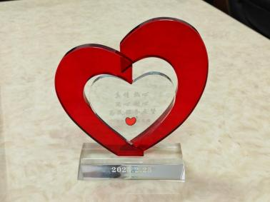 2025年4月3日,在廣東省中山市石岐街道仙湖社區(qū)黨群服務(wù)中心內(nèi)暖意融融。轄區(qū)某小學(xué)學(xué)生小浩(化名)雙手捧著一個(gè)晶瑩剔透的水晶愛心杯,感謝政府和社區(qū)對他的幫助和關(guān)懷。杯身鐫刻的"真情 熱心 用心 耐心,為民服務(wù)點(diǎn)贊" 十六個(gè)鎏金大字,在春日陽光的照耀下折射出溫暖的光芒,這是少年定制的特殊禮物。