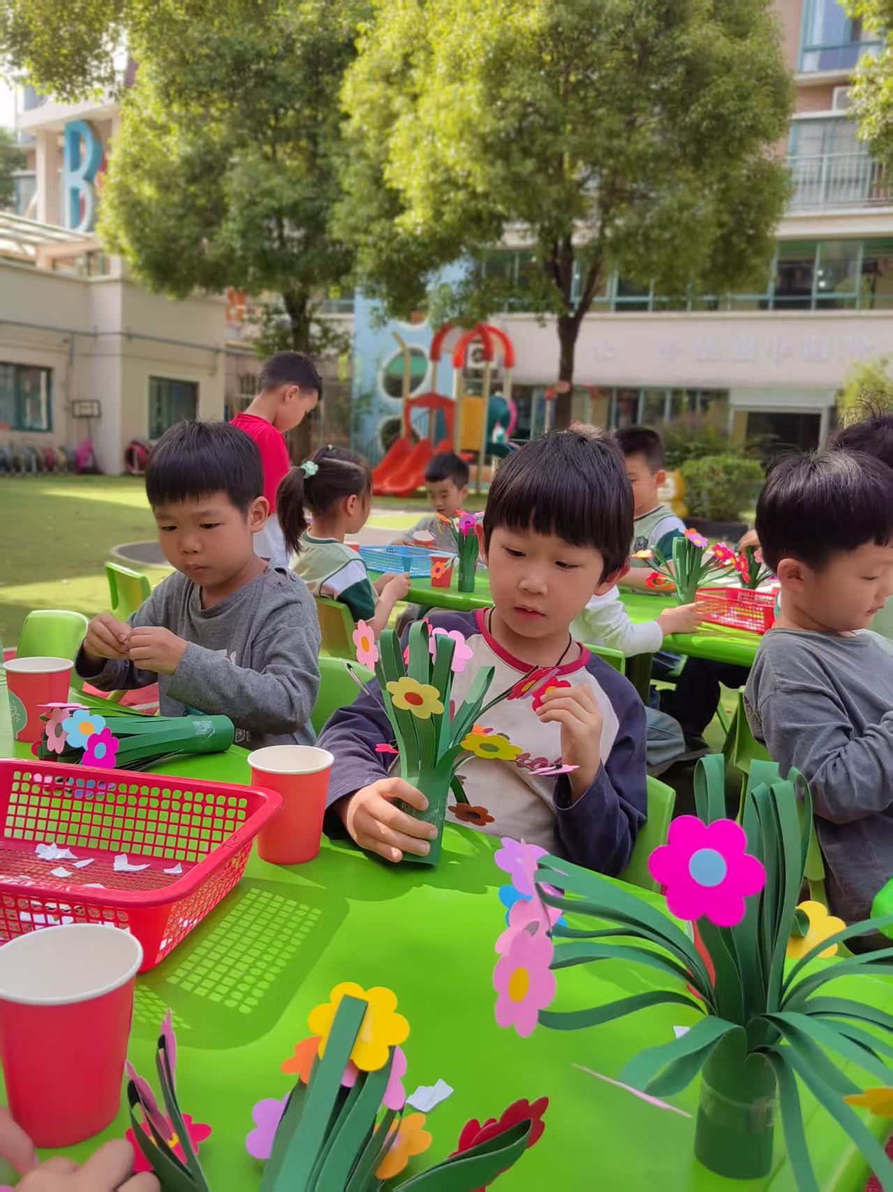 活動現(xiàn)場,整個幼兒園瞬間變成了創(chuàng)意與愛的海洋。不同年齡段的小朋友們在老師的指導(dǎo)下,充分發(fā)揮自己的想象力和創(chuàng)造力,制作出了一份份獨一無二的母親節(jié)禮物。孩子們先挑選出粉色、紅色、紫色等色彩鮮艷的粘土,將粘土反復(fù)揉捏塑形,讓花瓣呈現(xiàn)出自然的紋理與弧度。一片片花瓣堆疊纏繞,綻放出嬌艷欲滴的玫瑰花朵,再用綠色粘土制作出葉片和花莖,錯落有致地搭配在竹籃中,精致的粘土卡片花束和手工背包便誕生了。此次活動不僅鍛煉了孩子們的動手能力和創(chuàng)造力,更讓他們學(xué)會用實際行動表達(dá)對媽媽的感恩之情。