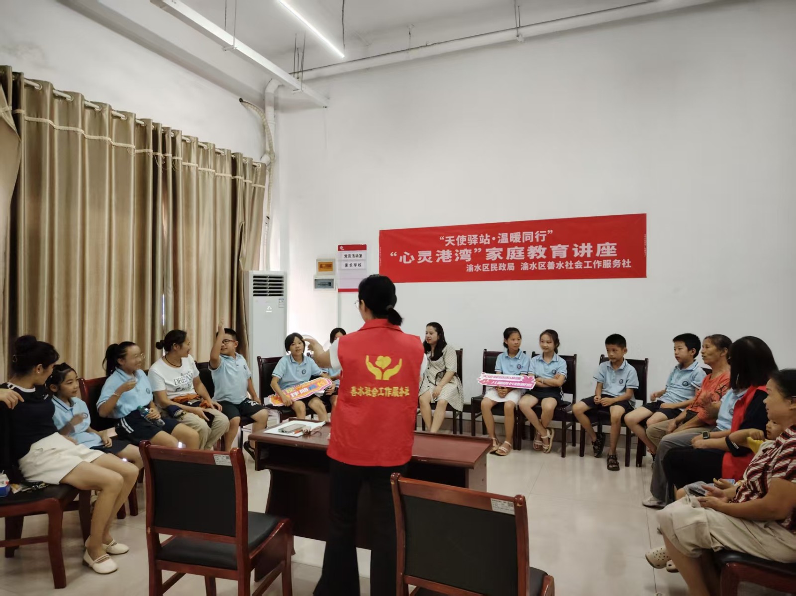 8月19日,江西省新余市渝水區(qū)新鋼街道鐵山社區(qū)關(guān)工委聯(lián)合區(qū)民政局舉辦“天使驛站·溫暖同行”——“心靈港灣”家庭教育講座,創(chuàng)新形式助力家庭溝通。