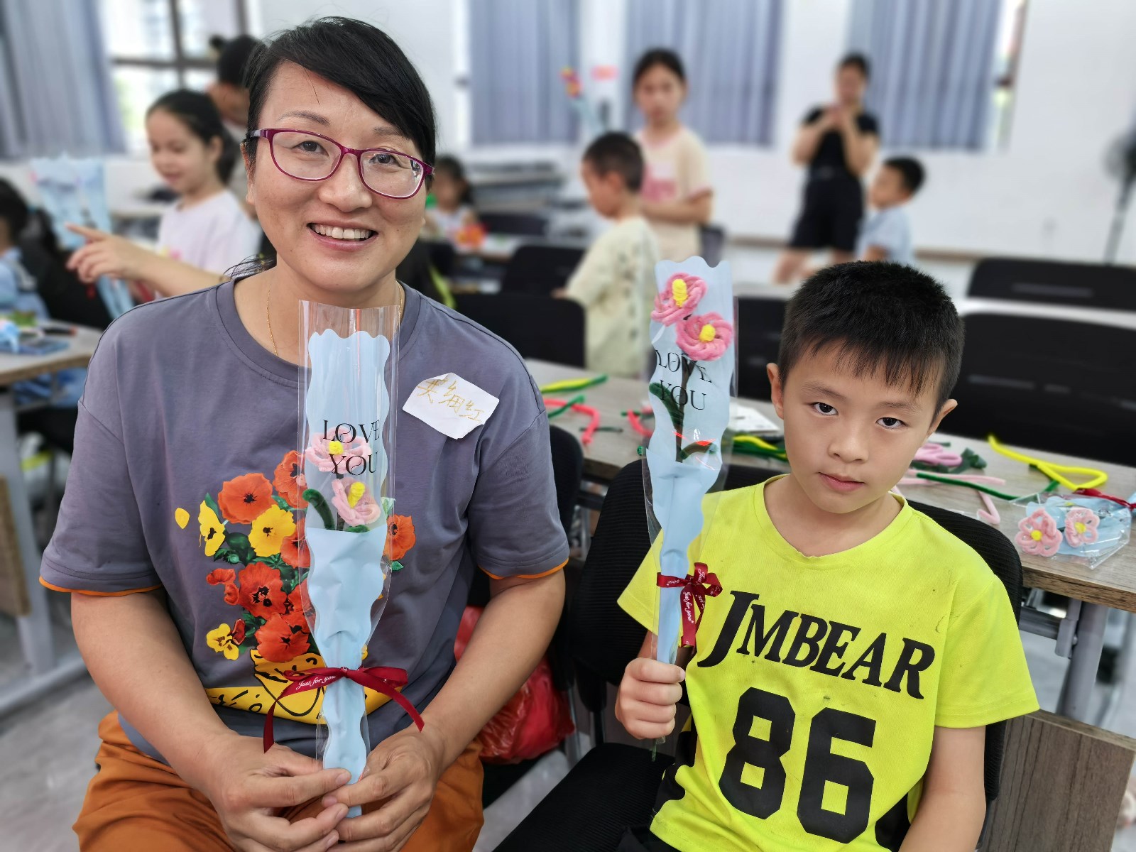 活動(dòng)開(kāi)始,“愛(ài)的抱抱”、“蘿卜蹲”破冰游戲讓現(xiàn)場(chǎng)迅速升溫,陌生感漸漸消散。隨后進(jìn)入核心環(huán)節(jié)結(jié)對(duì)制作絨花。志愿者現(xiàn)場(chǎng)演示絨花繞絲、定型等步驟,“愛(ài)心媽媽”們耐心陪伴孩子,孩子們專(zhuān)注地跟著操作,一朵朵色彩鮮艷的絨花在默契配合中綻放。此次活動(dòng)不僅讓孩子們感受到親情般的關(guān)懷,更搭建起長(zhǎng)期關(guān)愛(ài)橋梁。